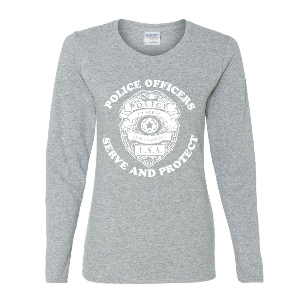 POLICE TO SERVE AND PROTECT women's long sleeve tee badge cop law enforcement gray