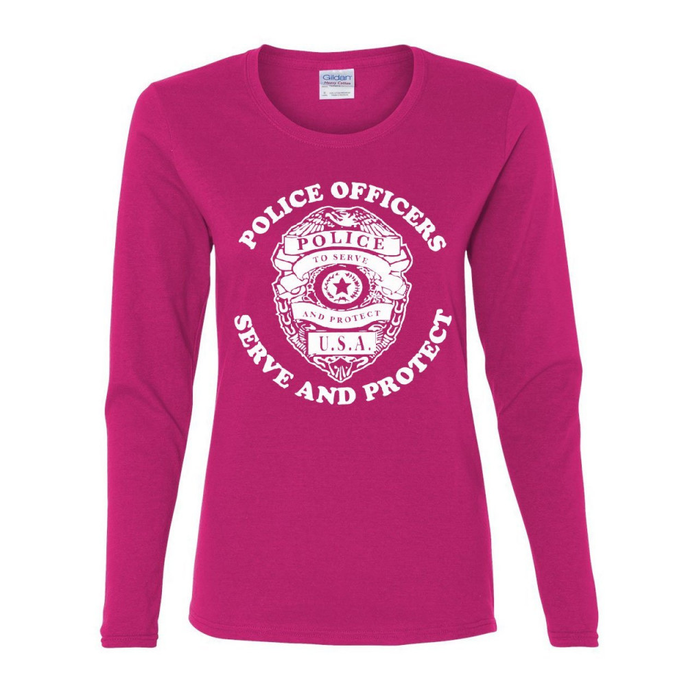 POLICE TO SERVE AND PROTECT women's long sleeve tee badge cop law enforcement pink