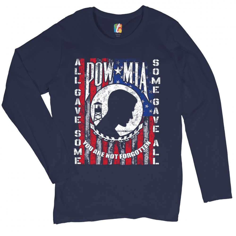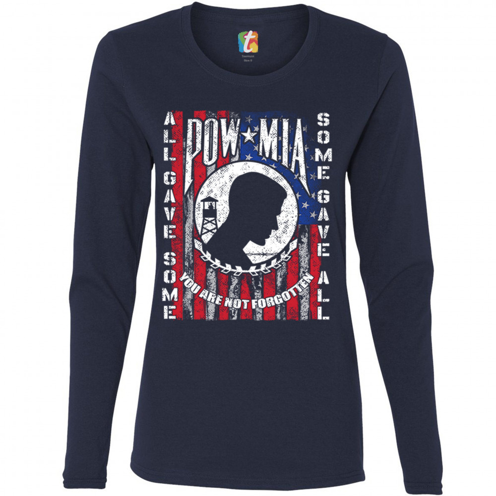 POW MIA YOU ARE NOT FORGOTTEN women's long sleeve t-shirt american flag veteran navy blue