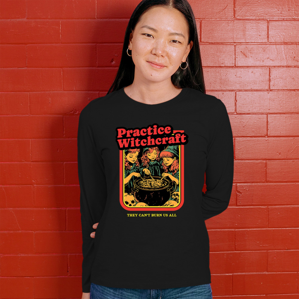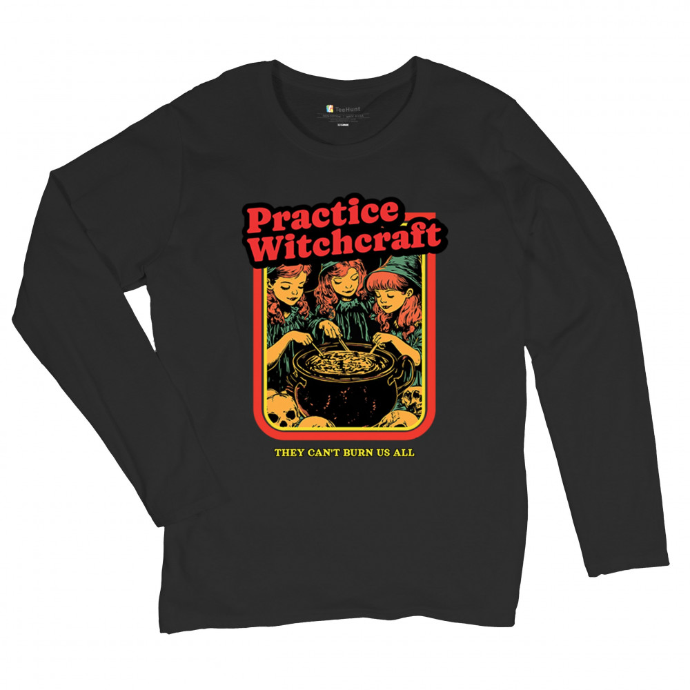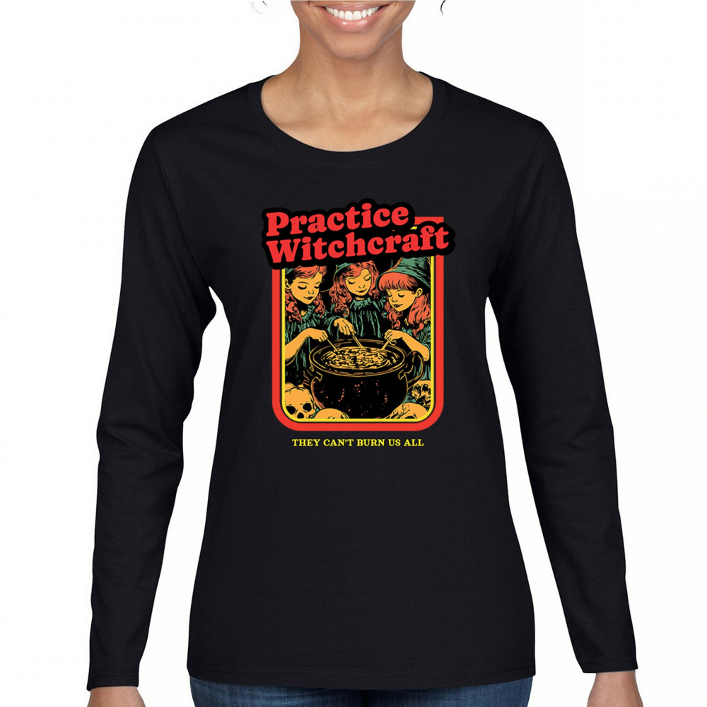 PRACTICE WITCHCRAFT women's long sleeve t-shirt they can't burn us all halloween black