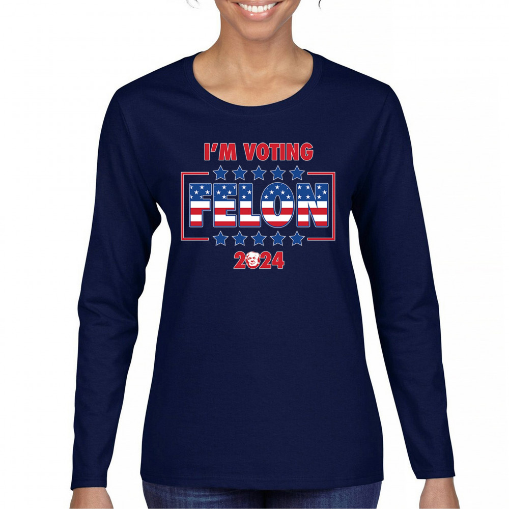 Show your support with the "I'm Voting Felon 2024" design, perfect for conservative patriots and Trump supporters. Featuring an American flag motif.