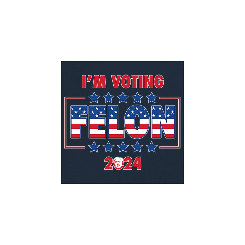 Stand out and express your political beliefs with our "I'm Voting Felon 2024" design. This bold and eye-catching design is perfect for conservative patriots and Trump supporters. Featuring a vibrant American flag motif, it’s ideal for rallies, political events, and daily wear. Show your commitment to America First and your defiance against opposition. This design is a perfect gift for like-minded friends and family who support the same values and are proud to show it.