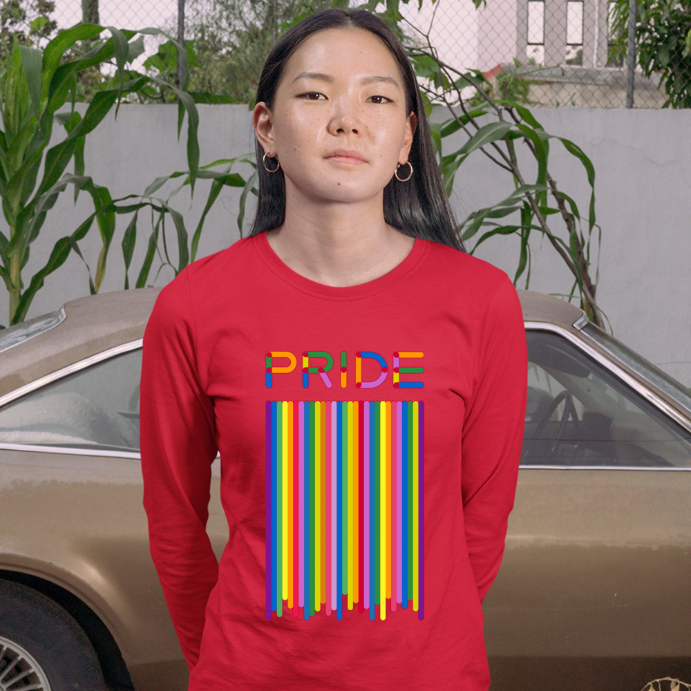 PRIDE FLAG women's long sleeve t-shirt lgbt support gay pride same-sex marriage red