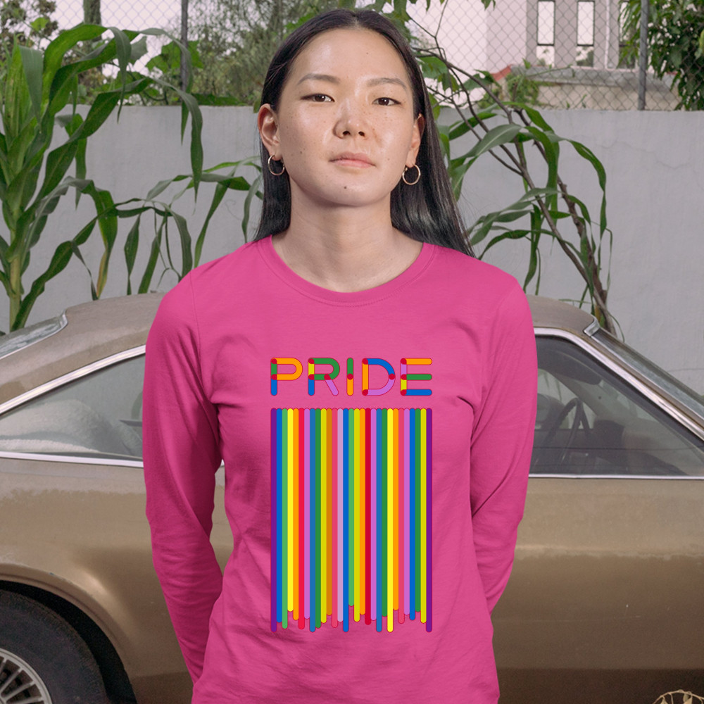 PRIDE FLAG women's long sleeve t-shirt lgbt support gay pride same-sex marriage pink