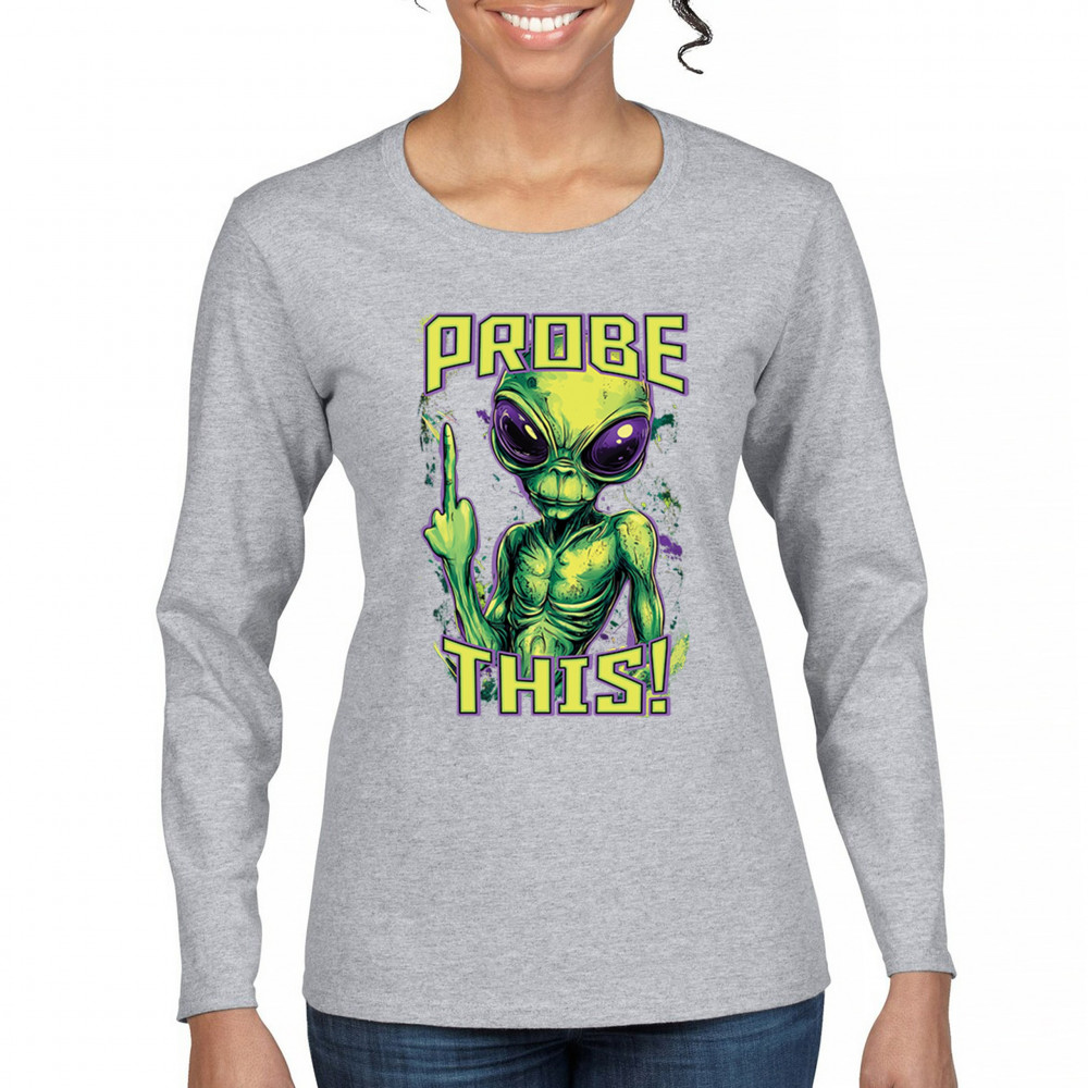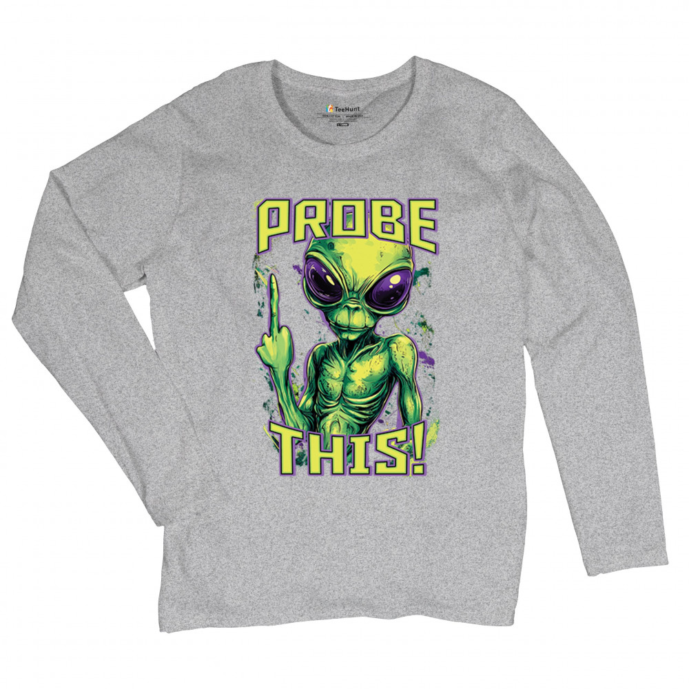 Alien attitude goes full throttle in this rebellious design featuring a defiant extraterrestrial flipping the bird. Bold green and purple tones amplify the sarcasm, making it perfect for UFO fans, protest vibes, and anyone with a dark sense of humor. Wear it loud to alien fests, parties, or anytime you want to stir the stars.