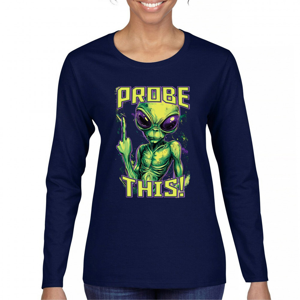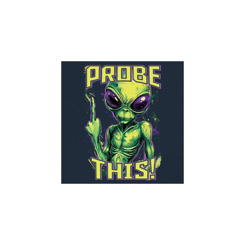 Alien attitude goes full throttle in this rebellious design featuring a defiant extraterrestrial flipping the bird. Bold green and purple tones amplify the sarcasm, making it perfect for UFO fans, protest vibes, and anyone with a dark sense of humor. Wear it loud to alien fests, parties, or anytime you want to stir the stars.