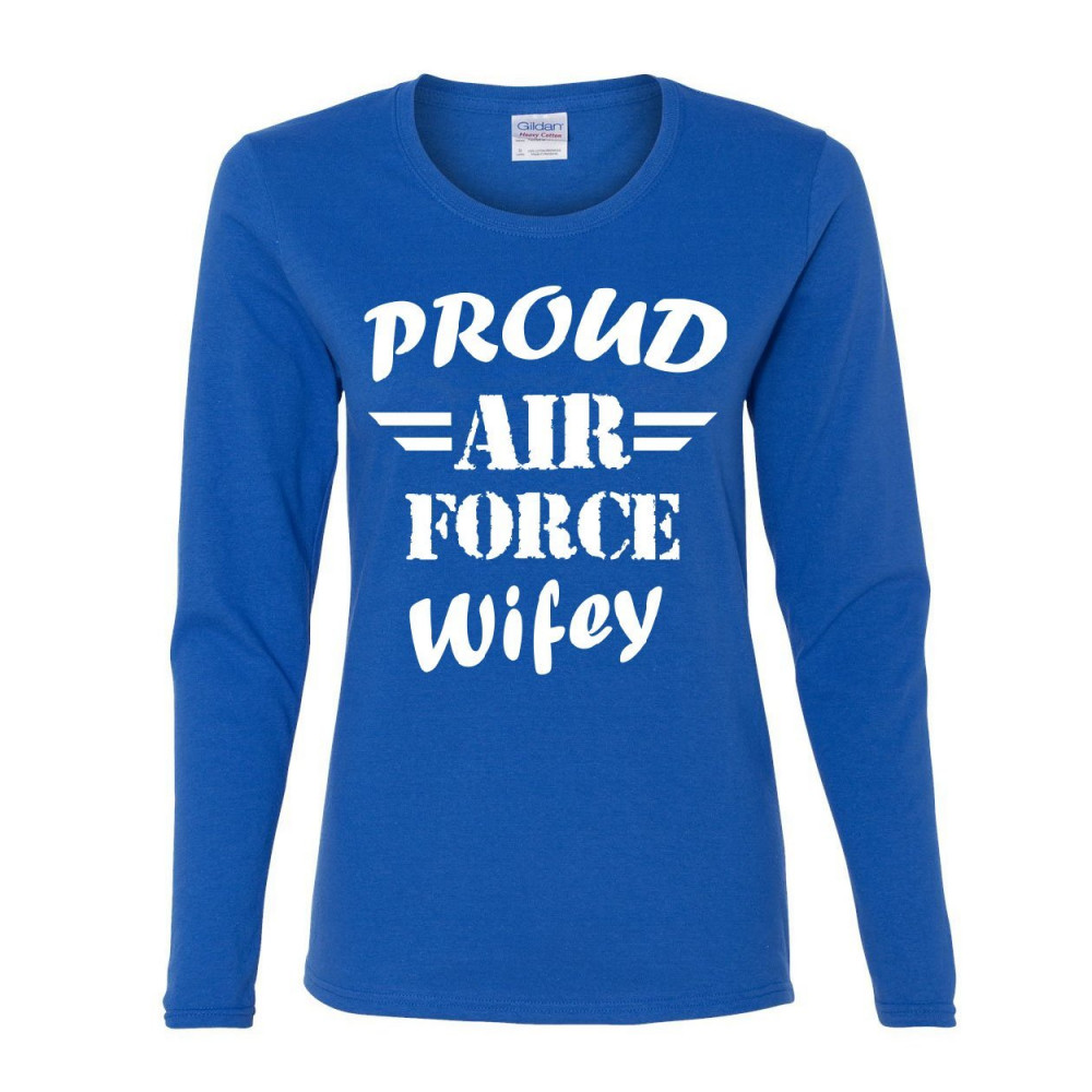 PROUD AIR FORCE WIFEY women's long sleeve tee veteran wife pride patriot heroic royal blue