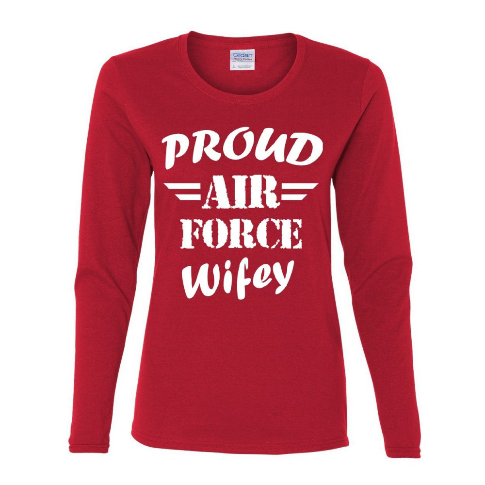 PROUD AIR FORCE WIFEY women's long sleeve tee veteran wife pride patriot heroic red
