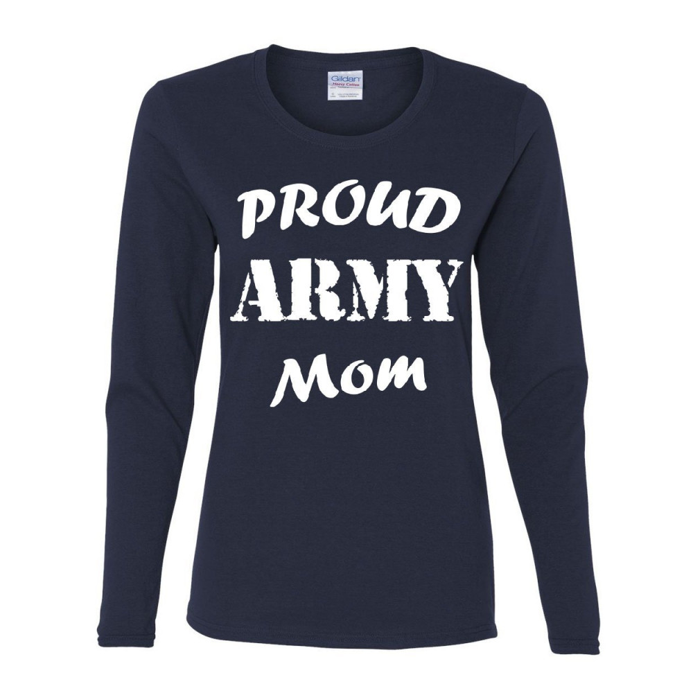 PROUD ARMY MOM women's long sleeve tee mother's day hero soldier pride heroic navy blue