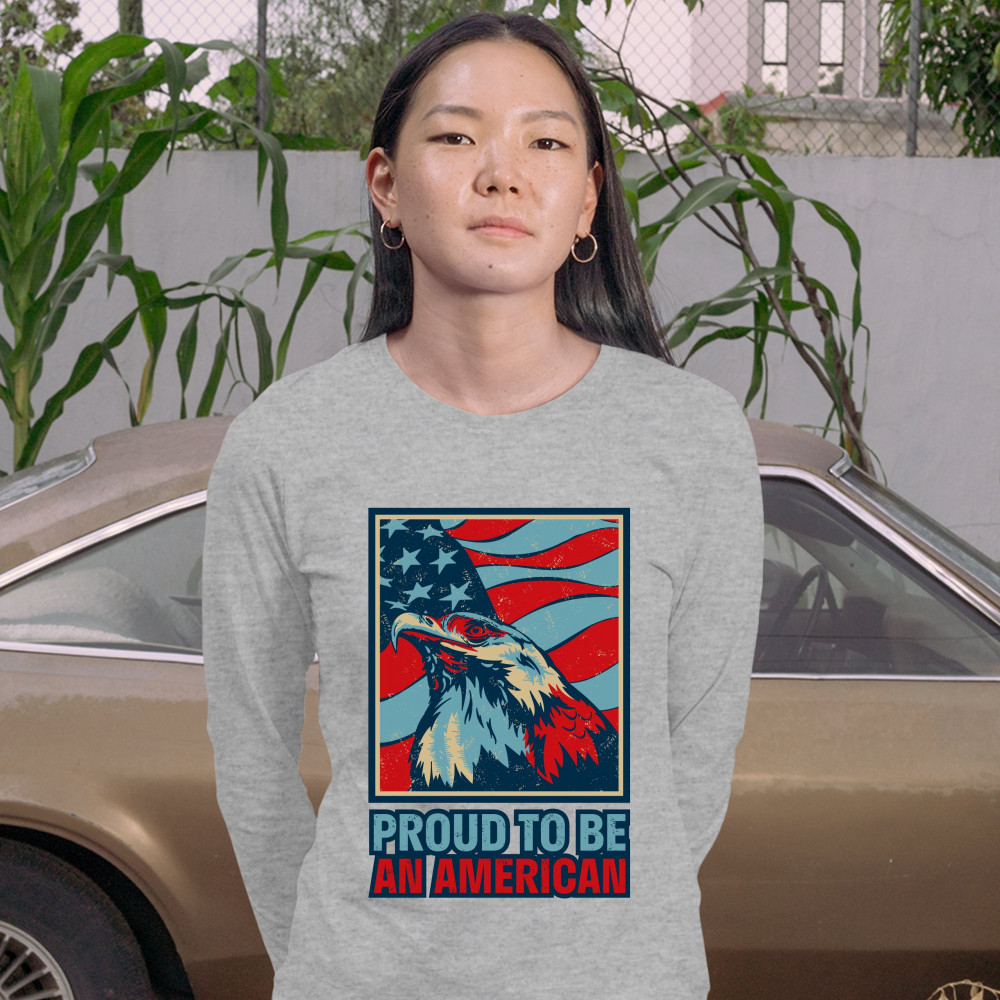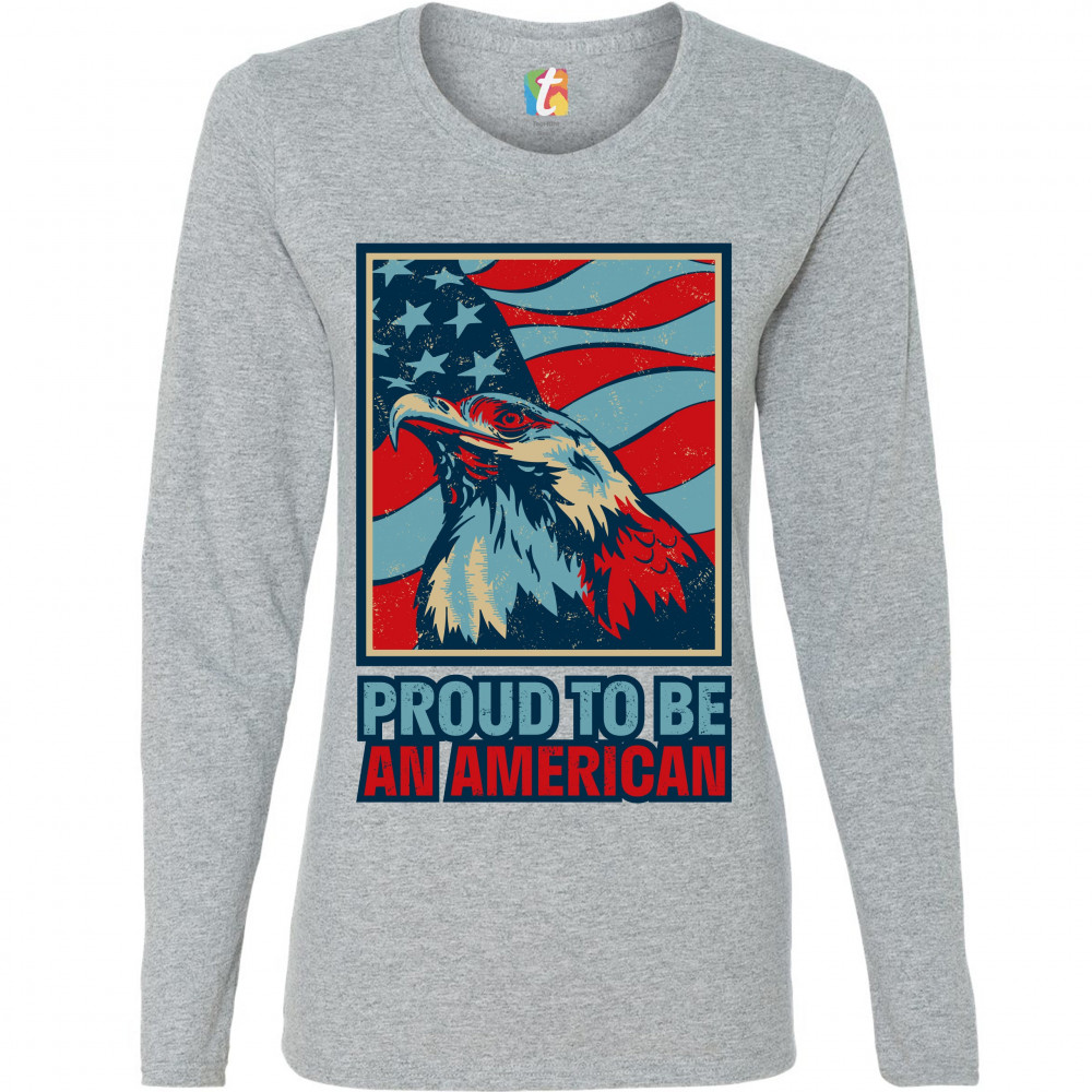PROUD TO BE AN AMERICAN women's long sleeve t-shirt 4th of july bald eagle usa gray