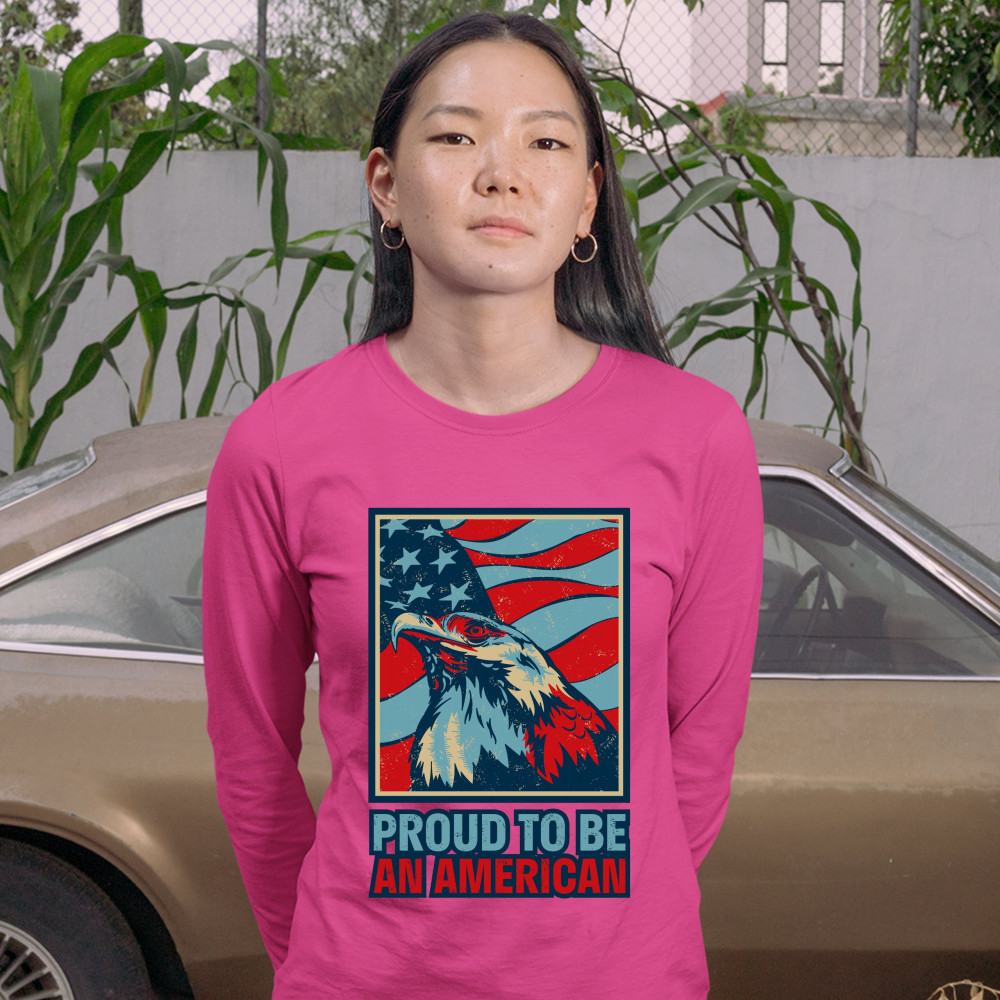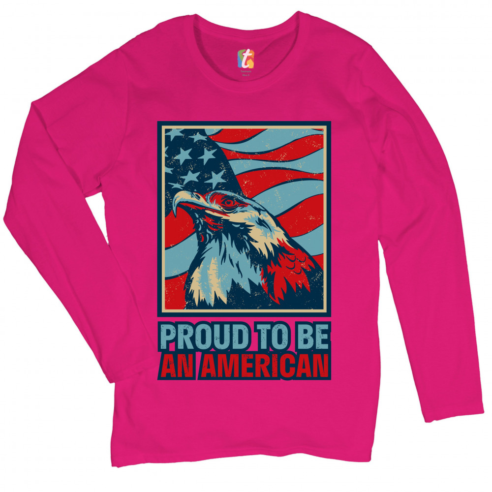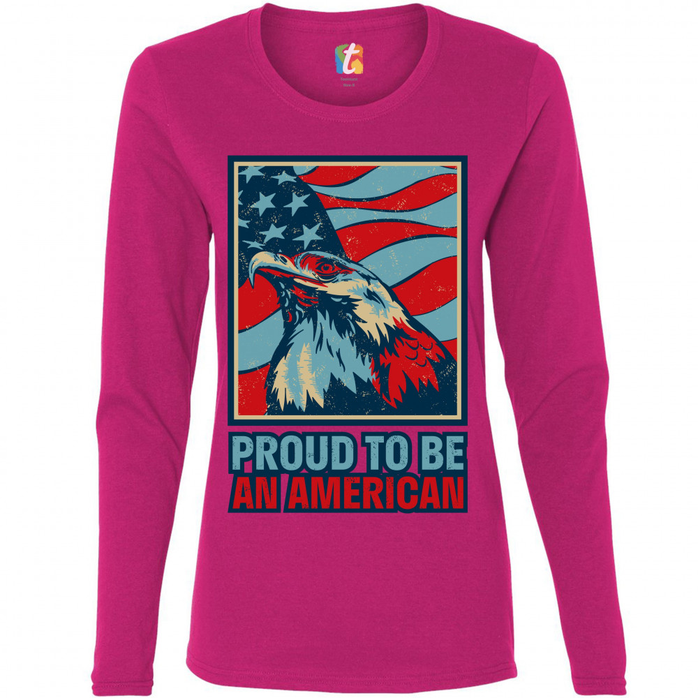 PROUD TO BE AN AMERICAN women's long sleeve t-shirt 4th of july bald eagle usa pink