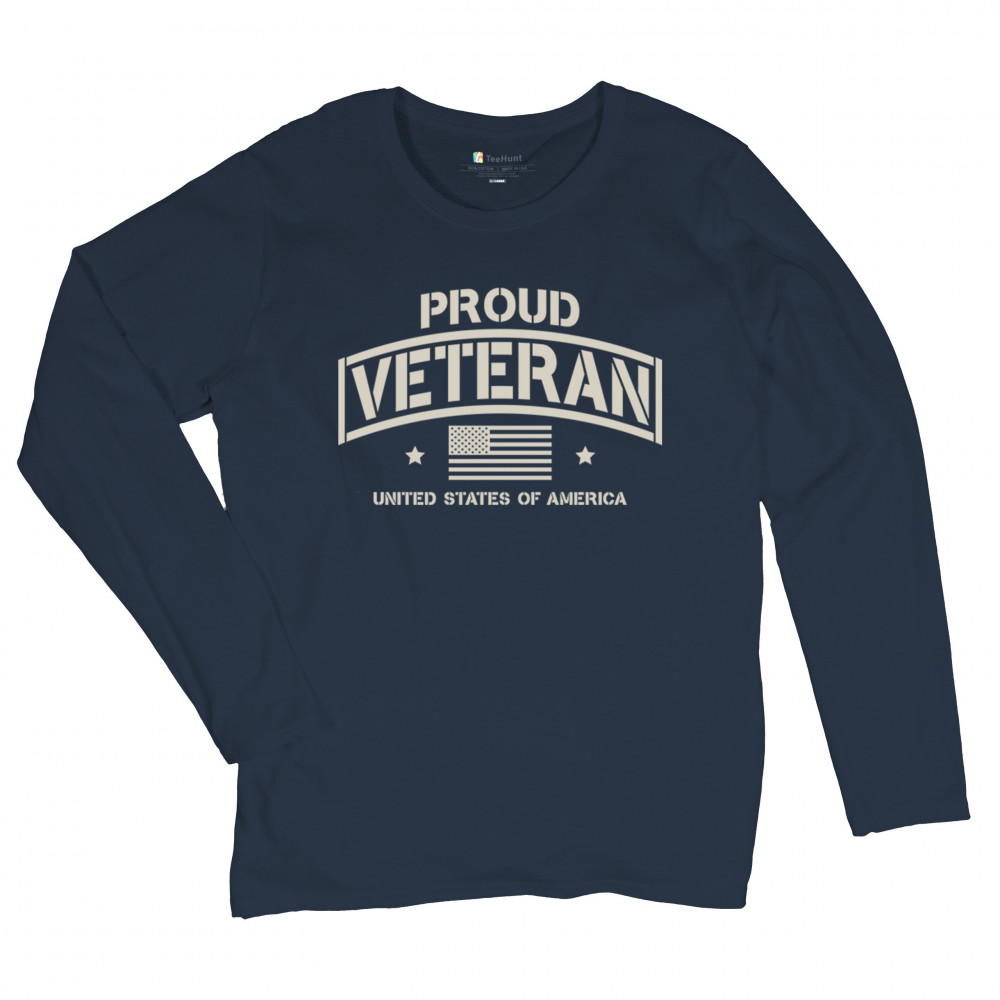 "Proud Veteran" shirt featuring bold design and American flag. Perfect for Memorial Day, Veterans Day, and everyday patriotism. High-quality and comfortable.