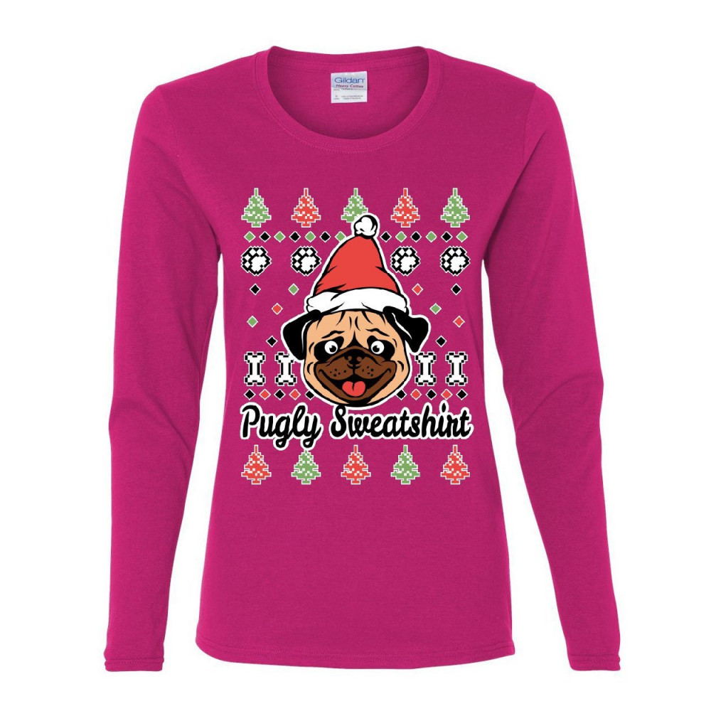 PUGLY SWEATSHIRT women's long sleeve tee pug ugly sweater jolly christmas xmas hot pink