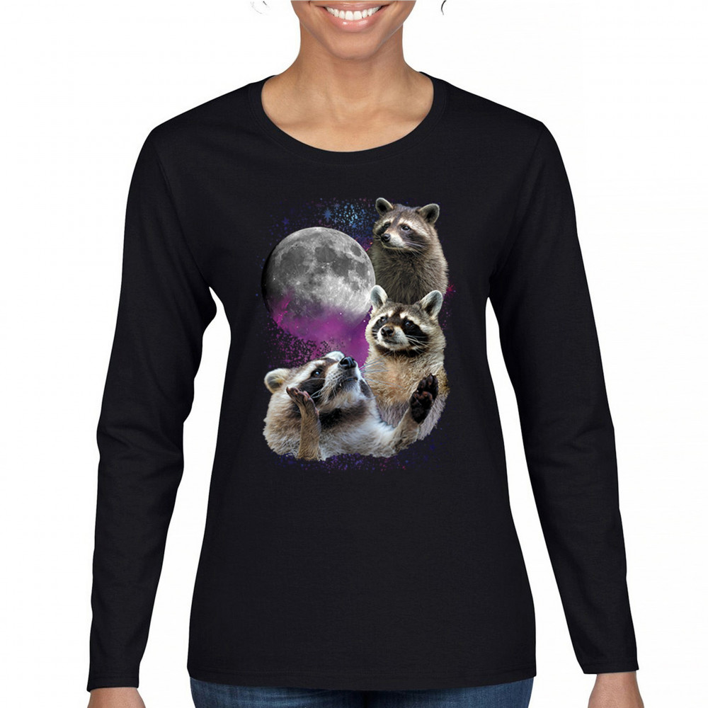 RACOONS HOWLING AT THE MOON women's long sleeve t-shirt funny animal in space black