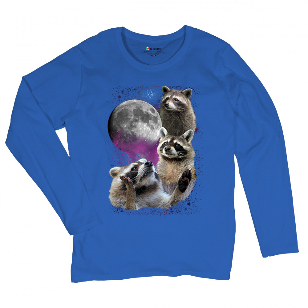 Embrace nature with this quirky raccoon and moon design, perfect for space and animal lovers. Ideal for casual wear or gifts.