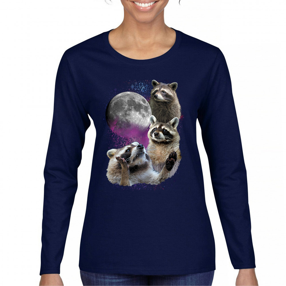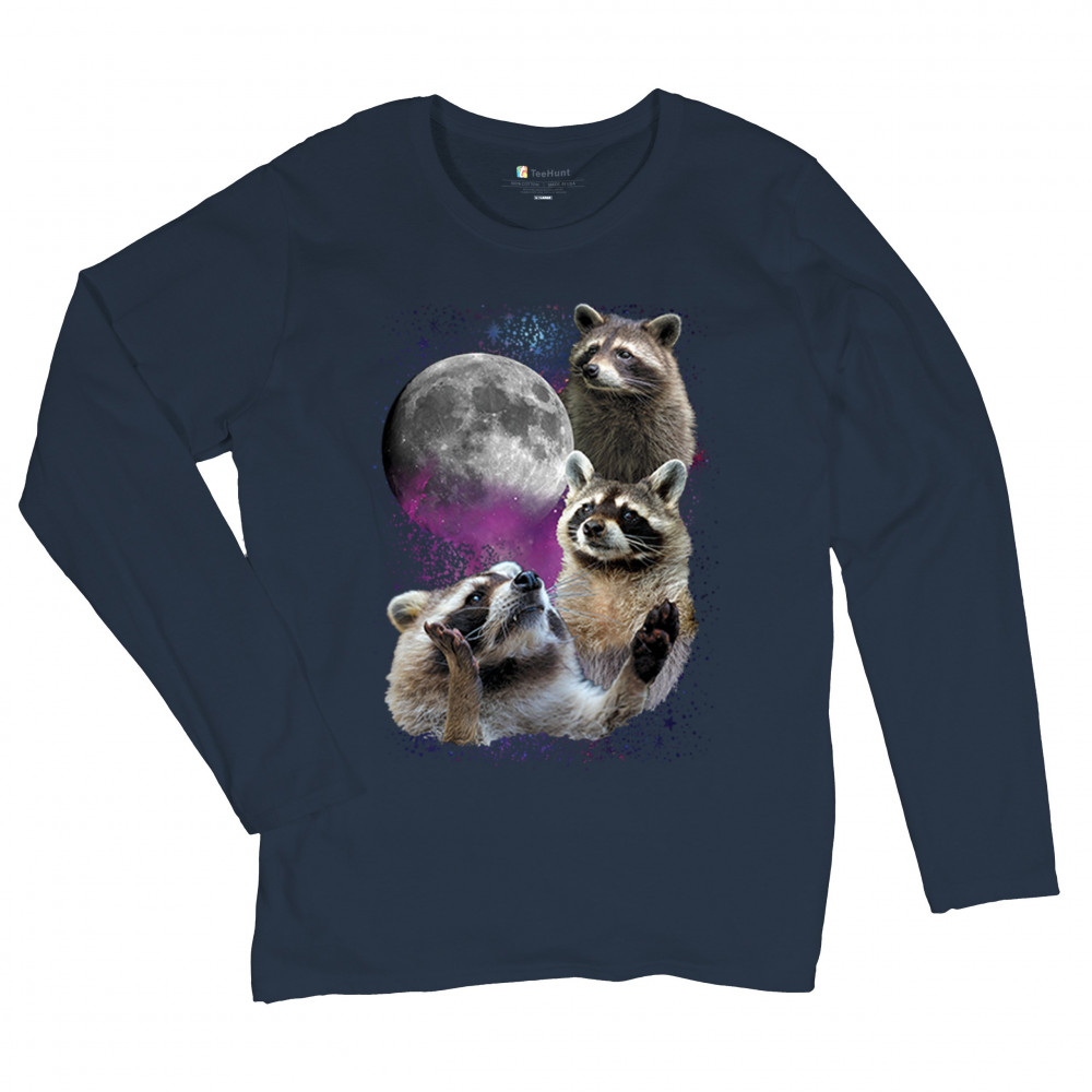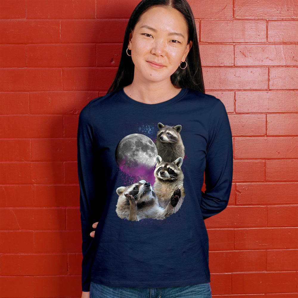 Embrace nature with this quirky raccoon and moon design, perfect for space and animal lovers. Ideal for casual wear or gifts.