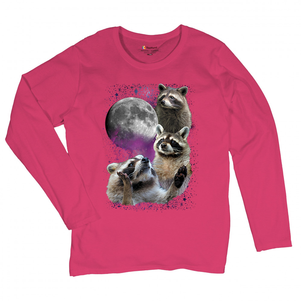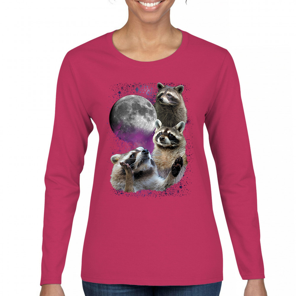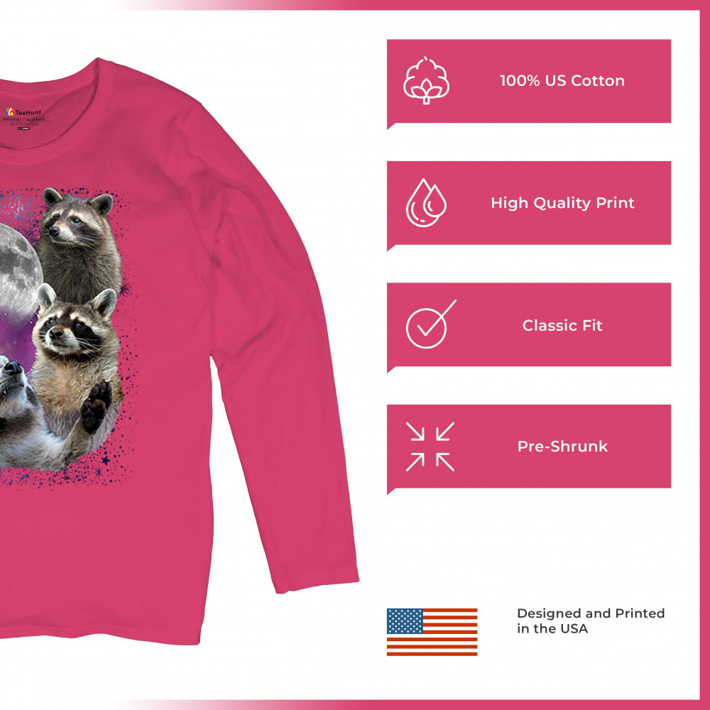 Embrace nature with this quirky raccoon and moon design, perfect for space and animal lovers. Ideal for casual wear or gifts.