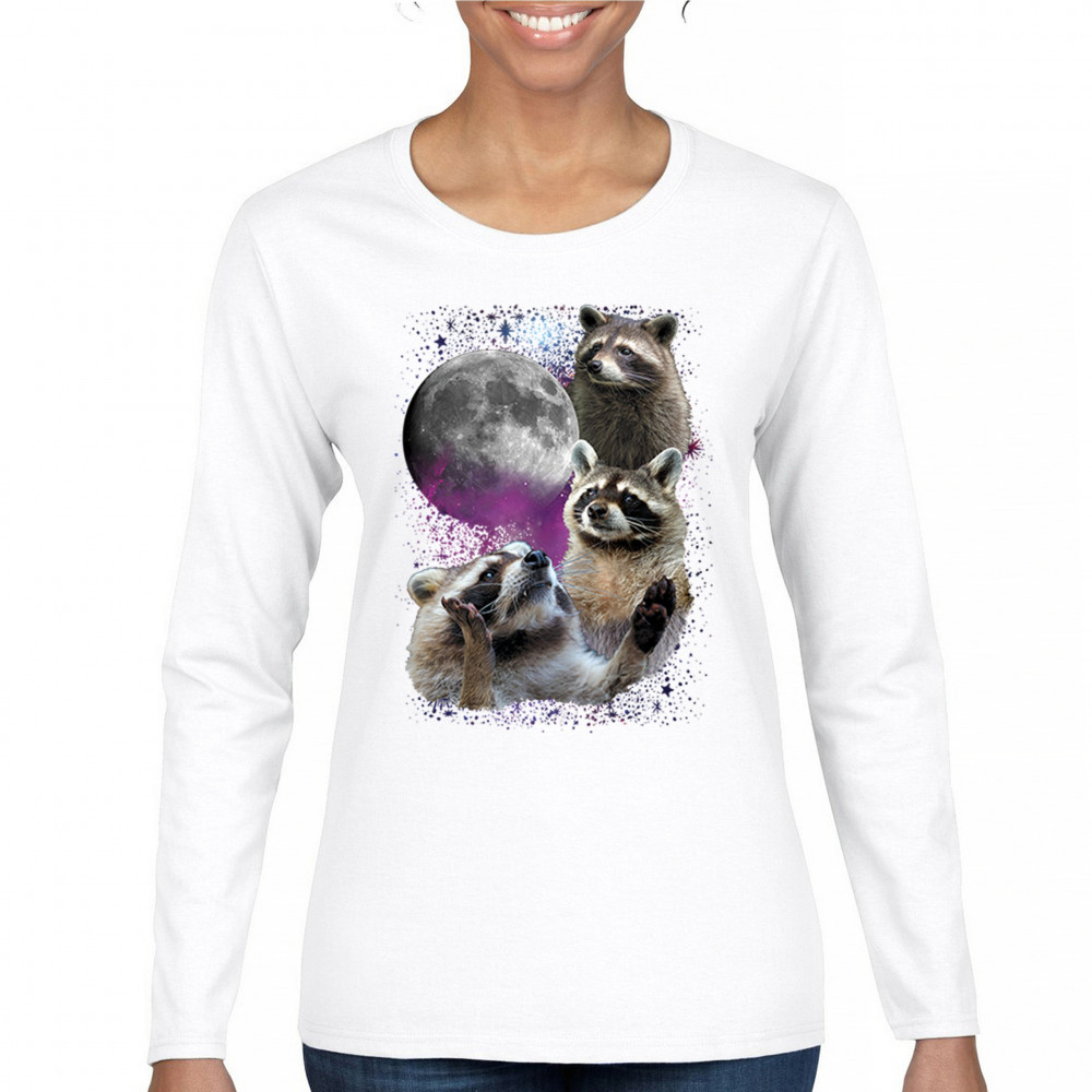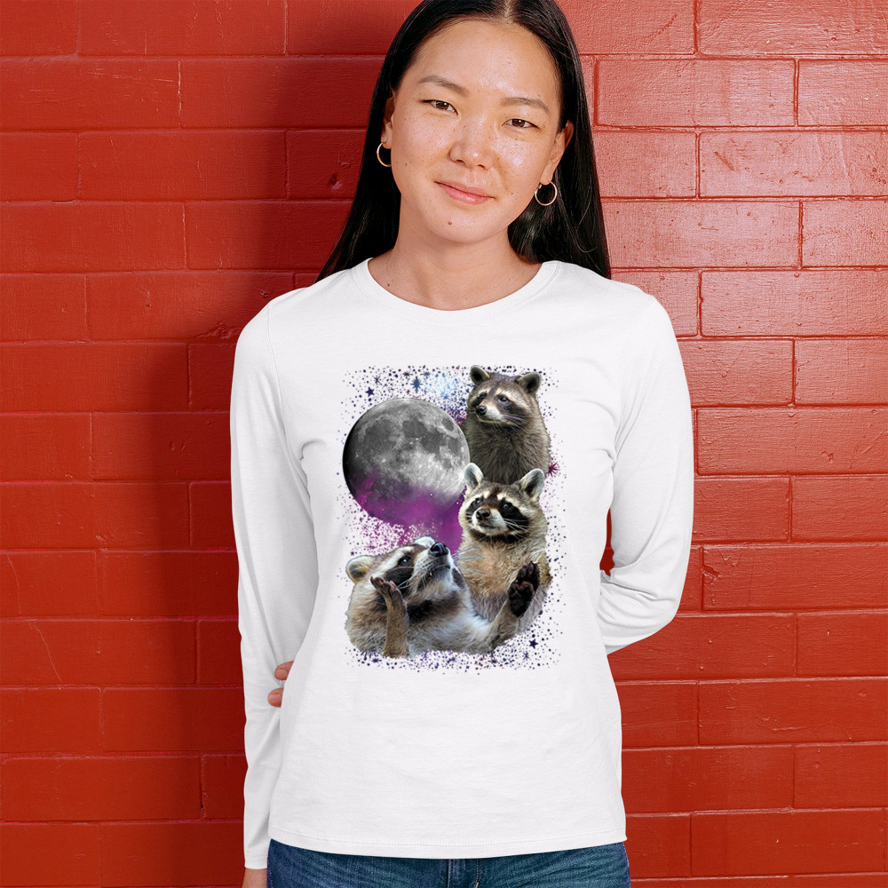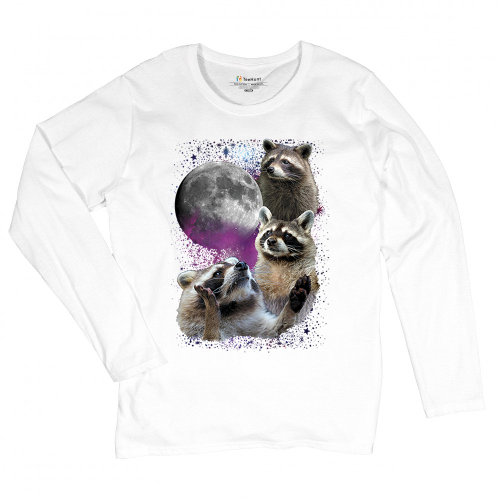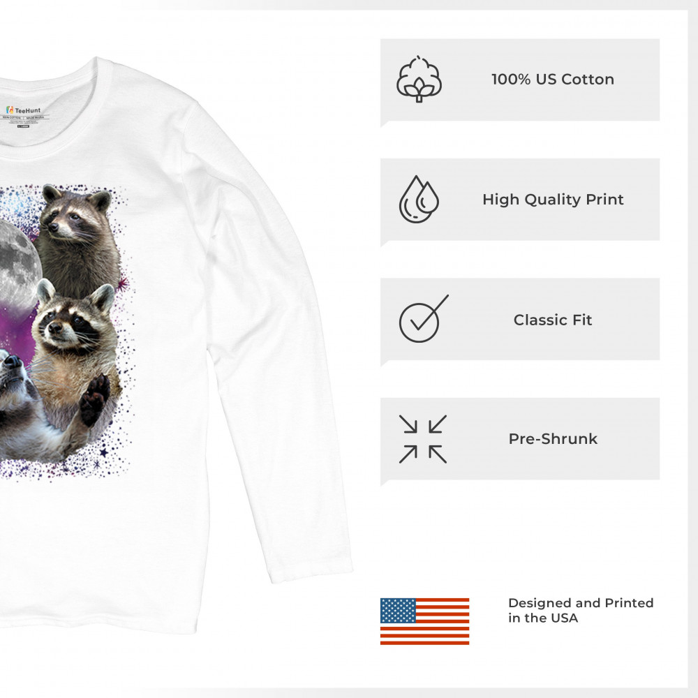 Embrace nature with this quirky raccoon and moon design, perfect for space and animal lovers. Ideal for casual wear or gifts.