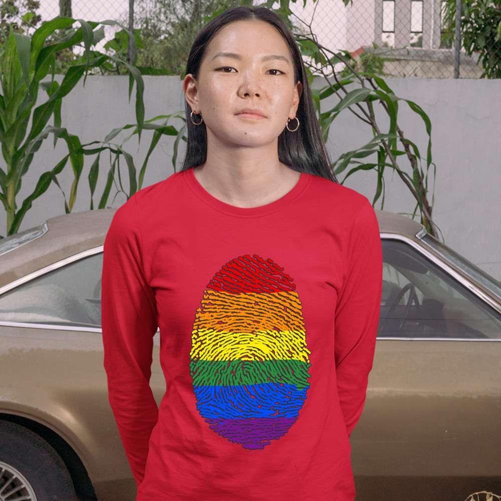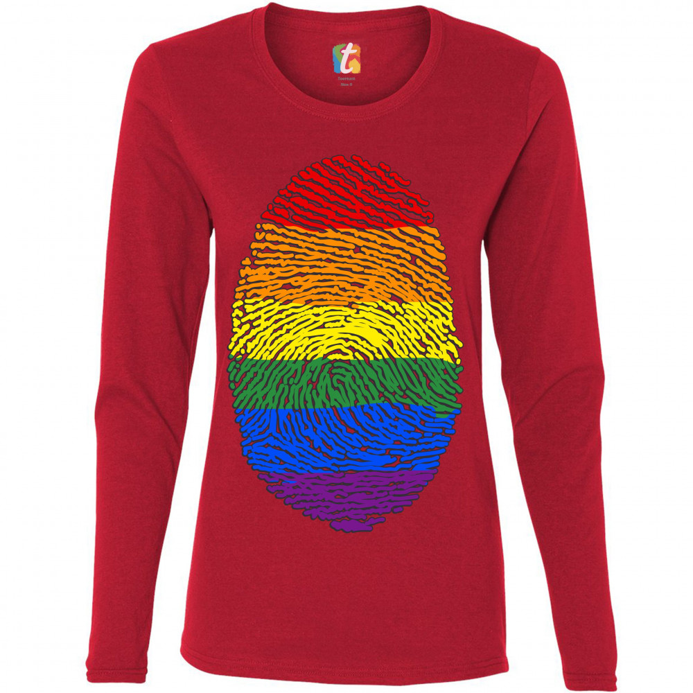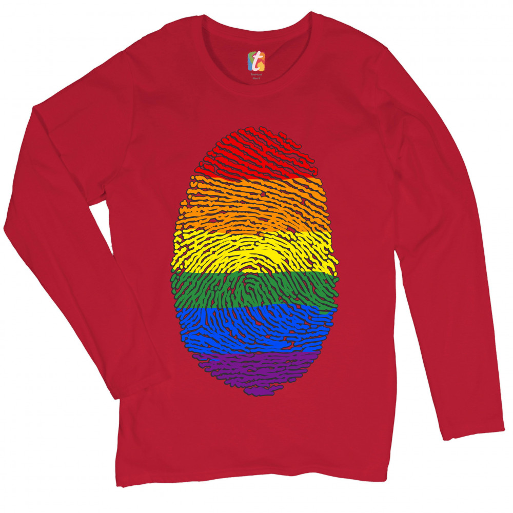 RAINBOW FINGERPRINT women's long sleeve t-shirt gay pride month lgbtq support red