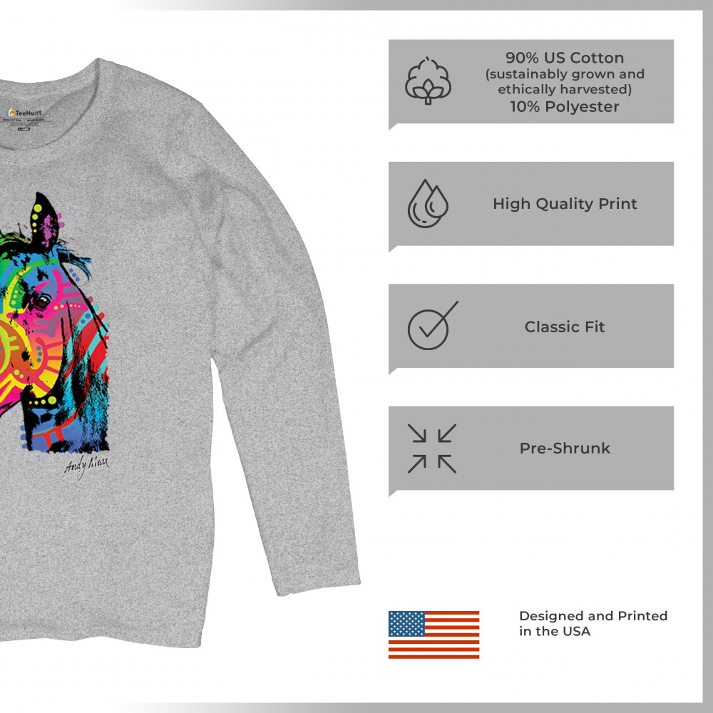 Celebrate your love for horses and art with this eye-catching multicolored horse head design. Packed with bold neon shades, abstract patterns, and expressive linework, it radiates motion and energy. A perfect fusion of animal beauty and pop art creativity, ideal for equestrians, art lovers, and color-forward trendsetters alike.