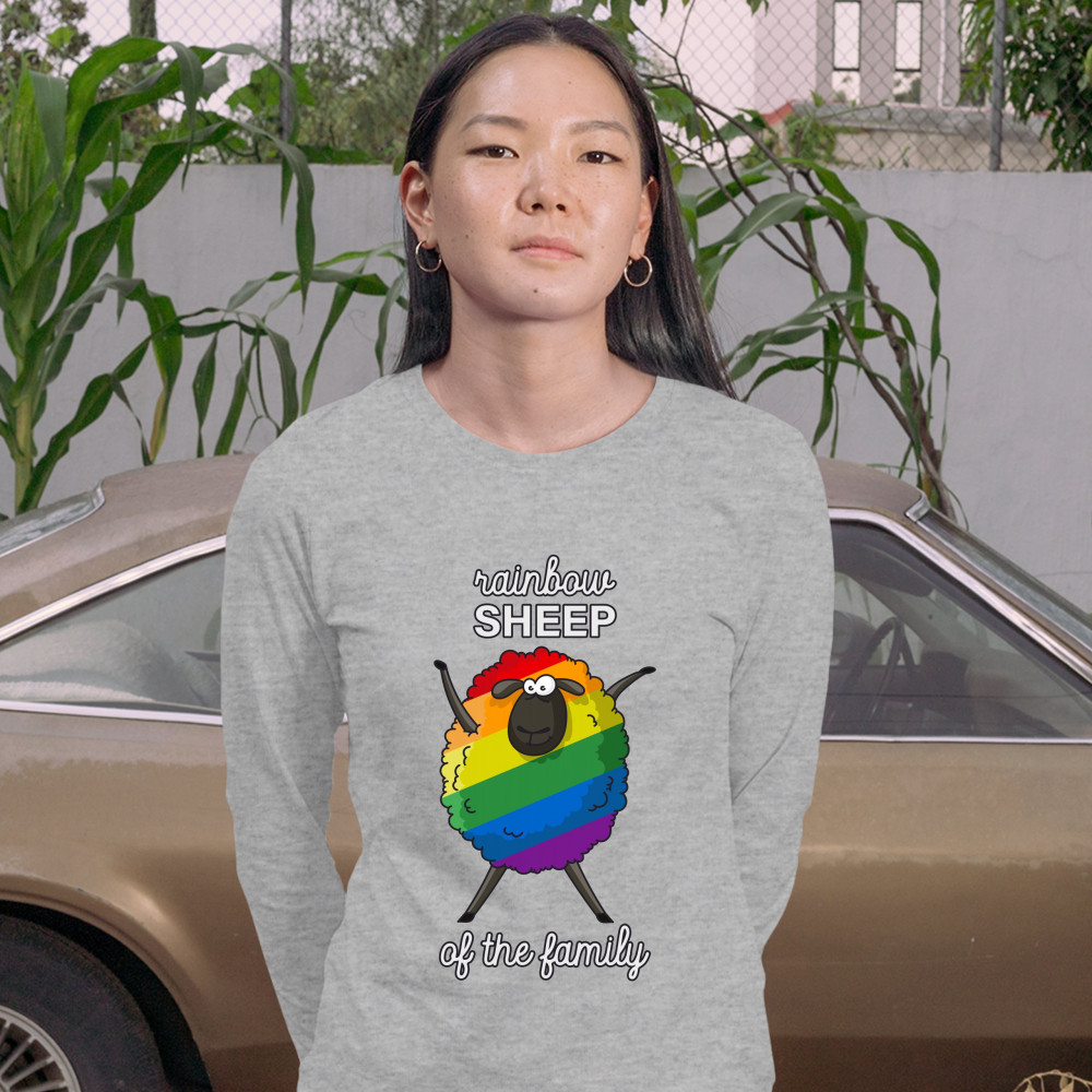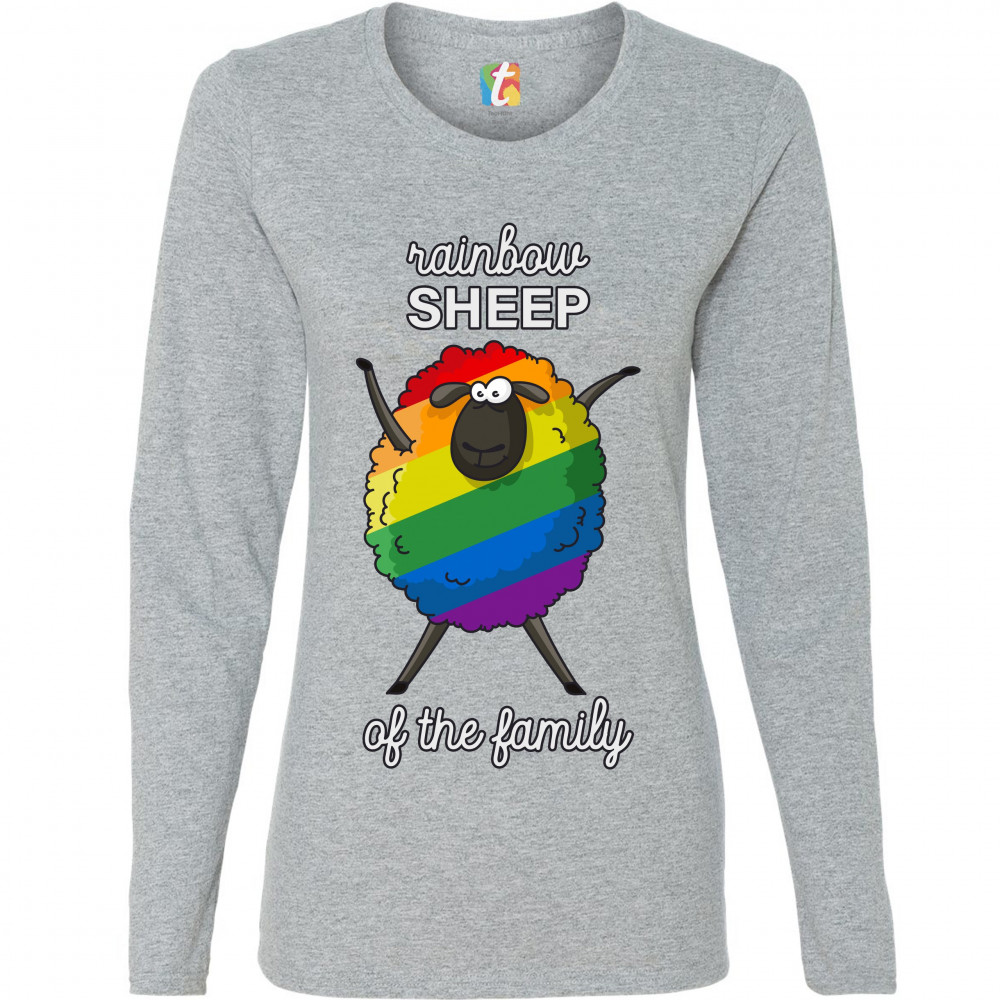 RAINBOW SHEEP OF THE FAMILY women's long sleeve t-shirt gay pride lgbt support gray
