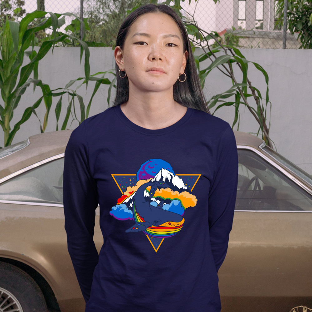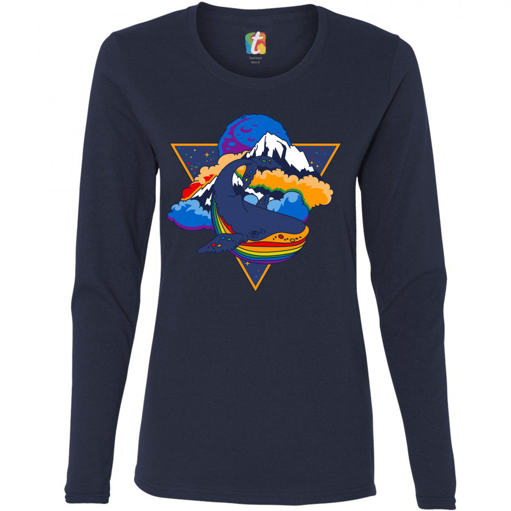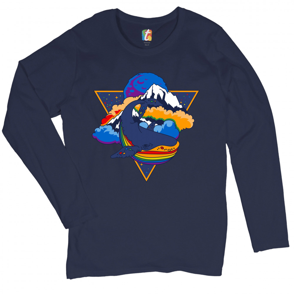 RAINBOW SPACE WHALE women's long sleeve t-shirt lgbt pride tolerance trippy navy blue