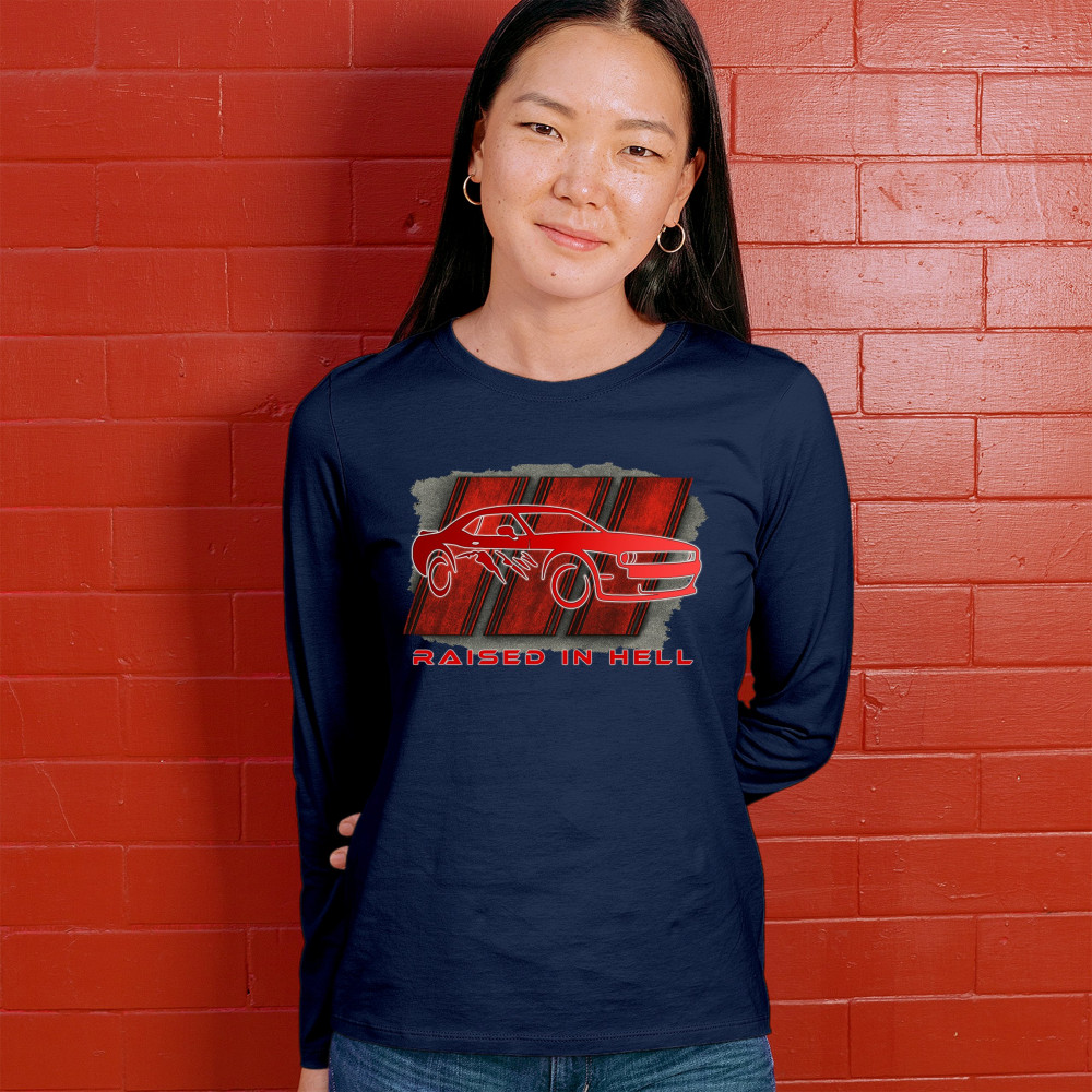 Bring heat to the streets with this Raised in Hell design. Featuring a blazing red muscle car and aggressive claw marks, it's perfect for Scat Pack lovers, burnout warriors, and throttle addicts. Whether you're tearing down the strip or parked at the meet, this design delivers pure muscle attitude and street-born fire.