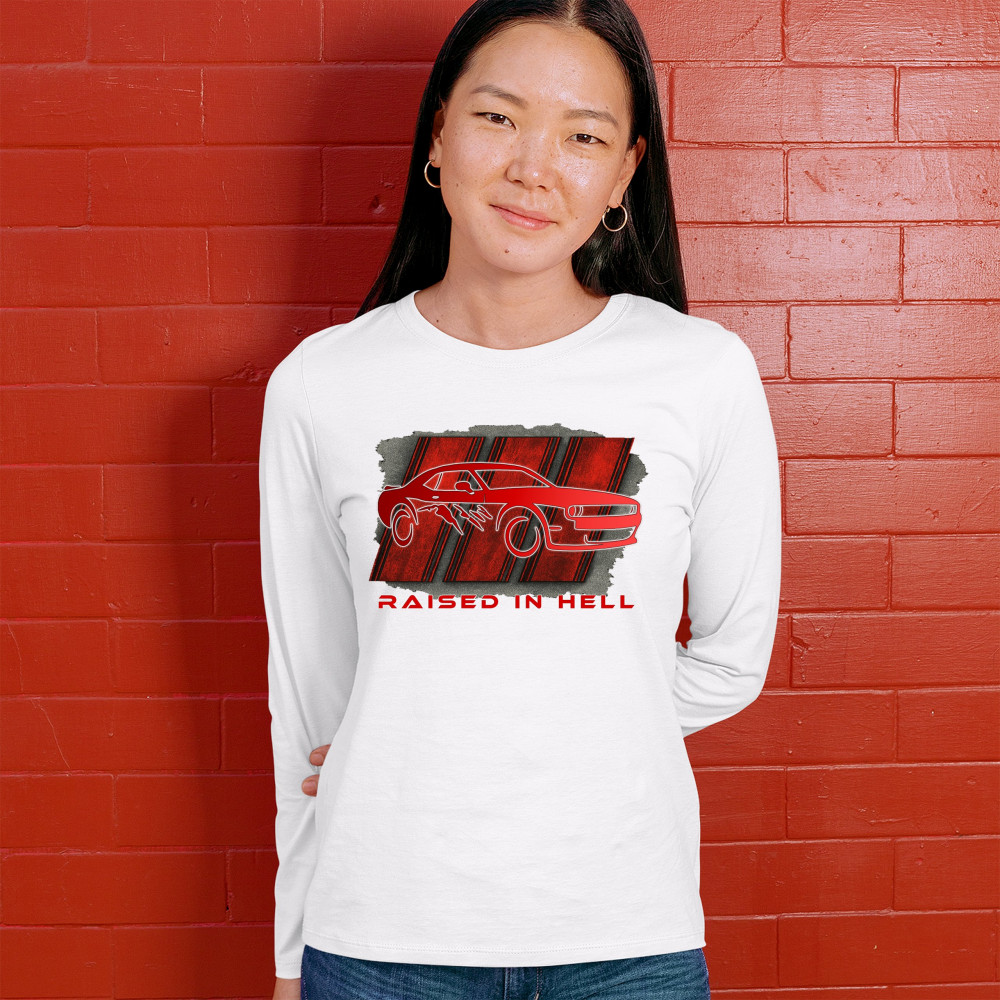 Bring heat to the streets with this Raised in Hell design. Featuring a blazing red muscle car and aggressive claw marks, it's perfect for Scat Pack lovers, burnout warriors, and throttle addicts. Whether you're tearing down the strip or parked at the meet, this design delivers pure muscle attitude and street-born fire.
