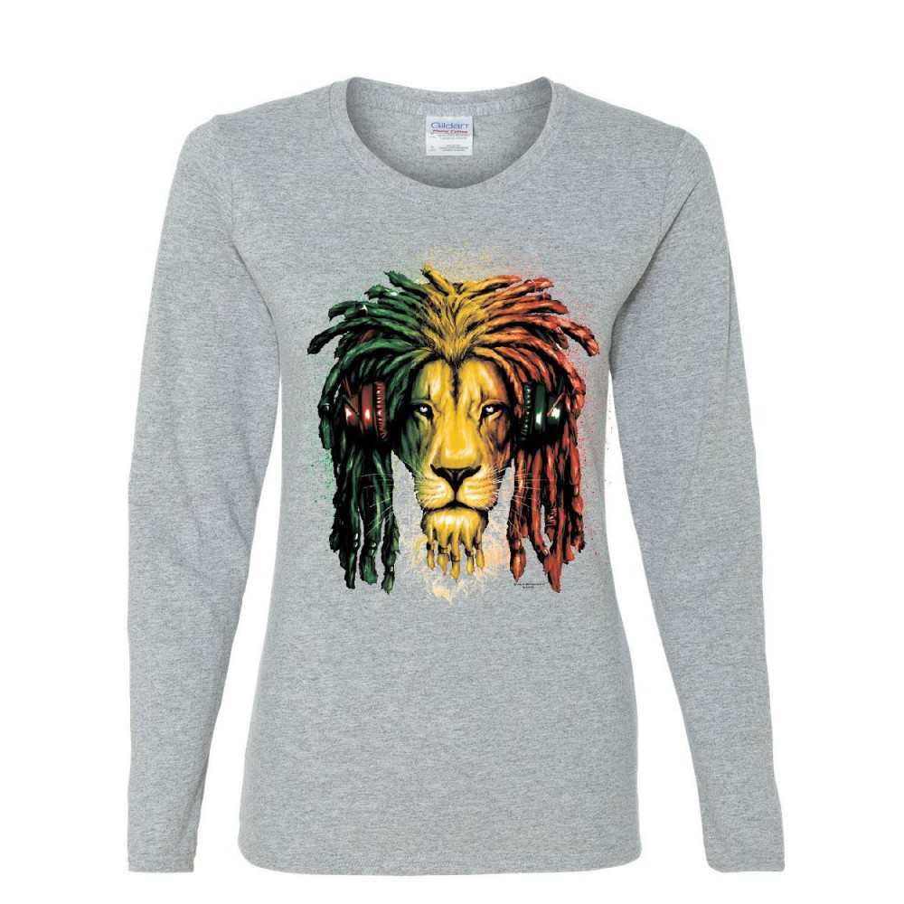RASTA LION WITH HEADPHONES 420 rasta lion with headphones long sleeve t-shirt calavera gray