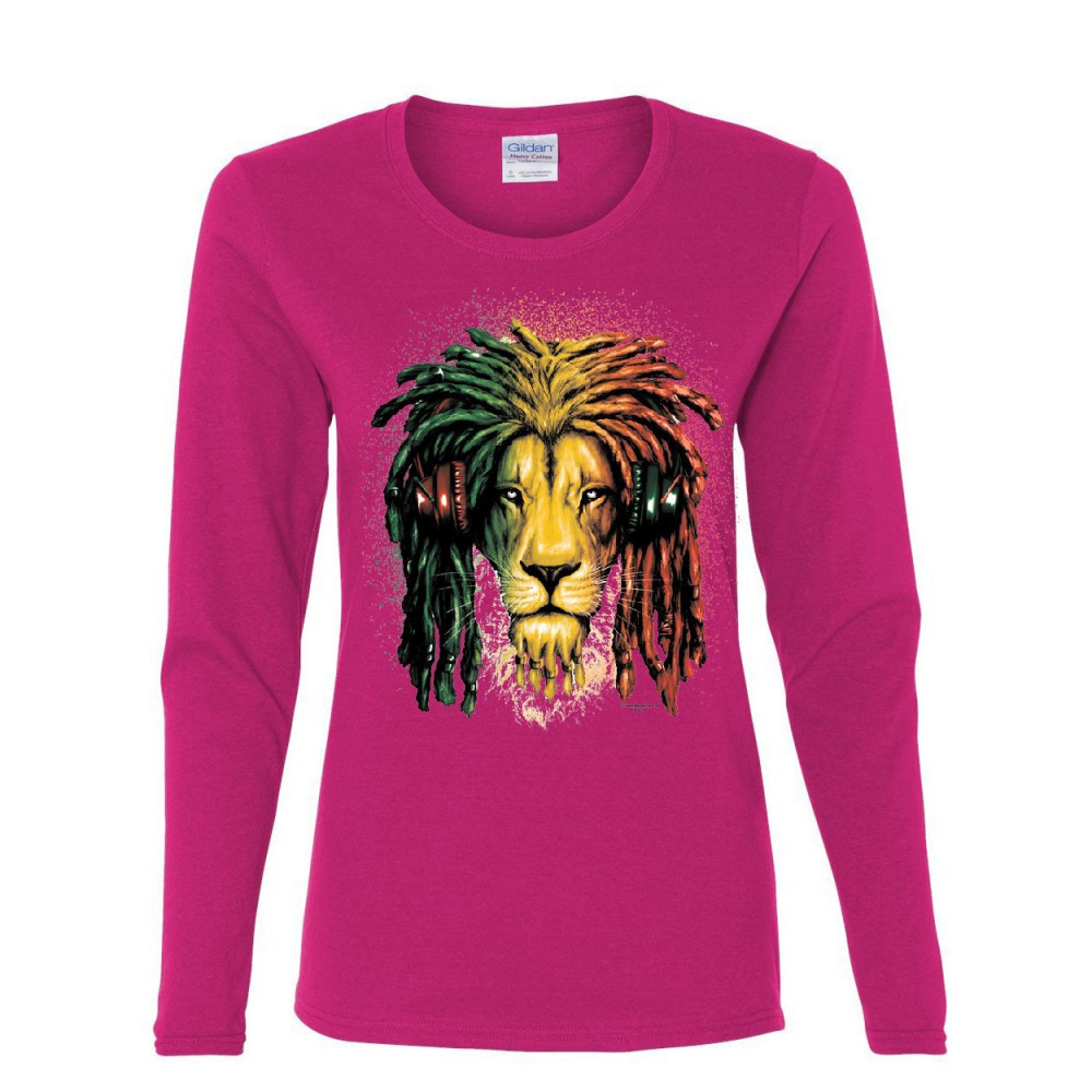 RASTA LION WITH HEADPHONES 420 rasta lion with headphones long sleeve t-shirt calavera pink