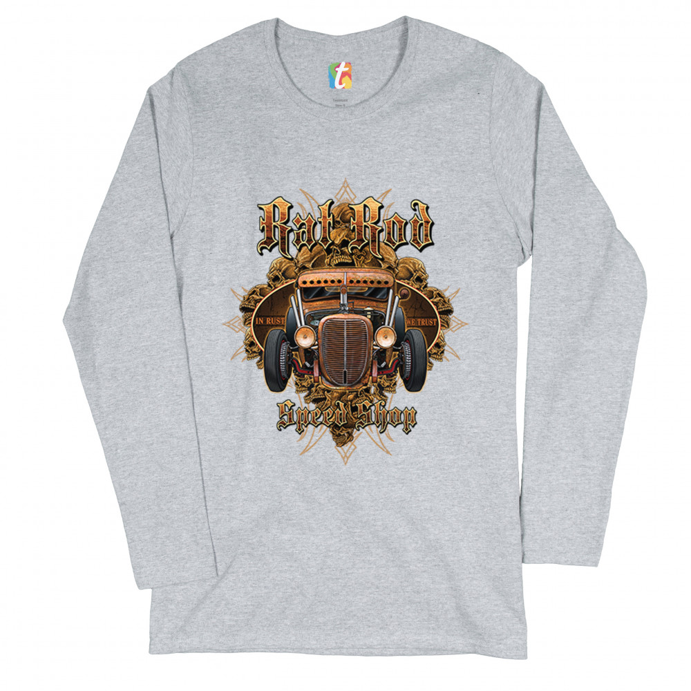 RAT ROD IN RUST WE TRUST women's long sleeve t-shirt hot rod route 66 vintage gray