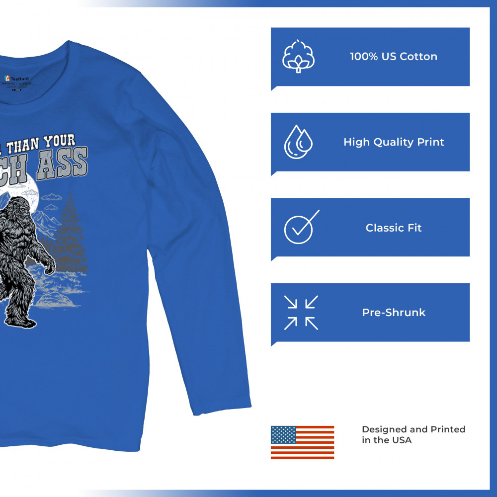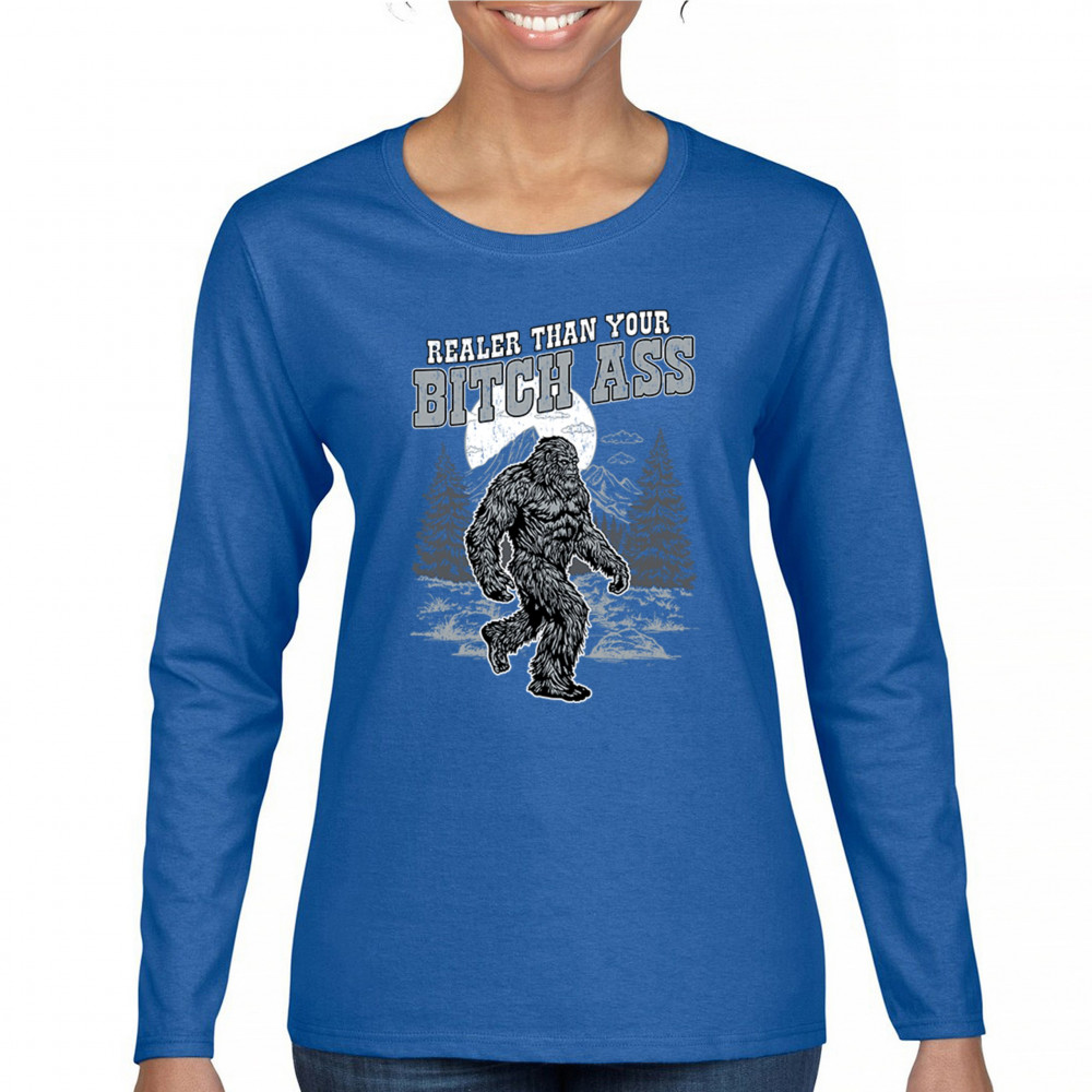 Edgy Bigfoot design with sarcastic cryptid humor and gritty wilderness style. Great for trolls, jokers, and rugged outdoors fans.