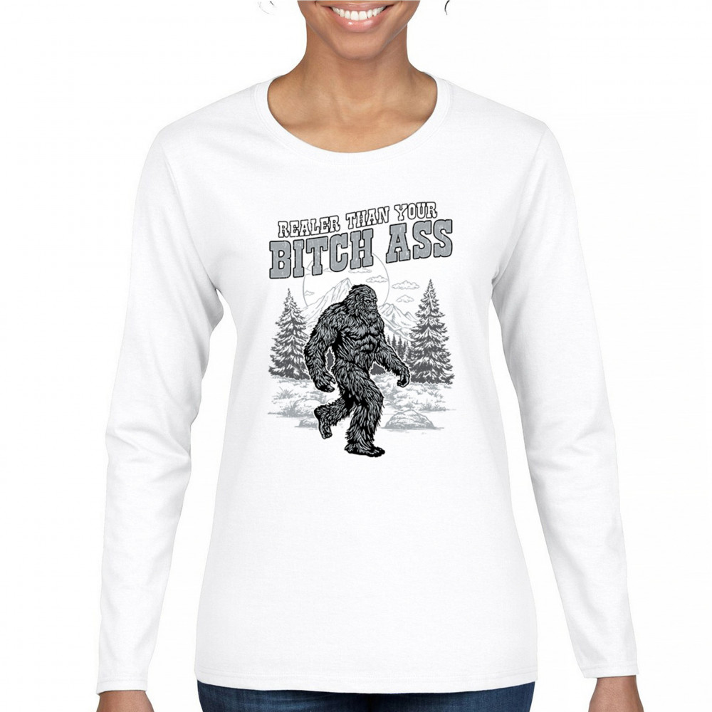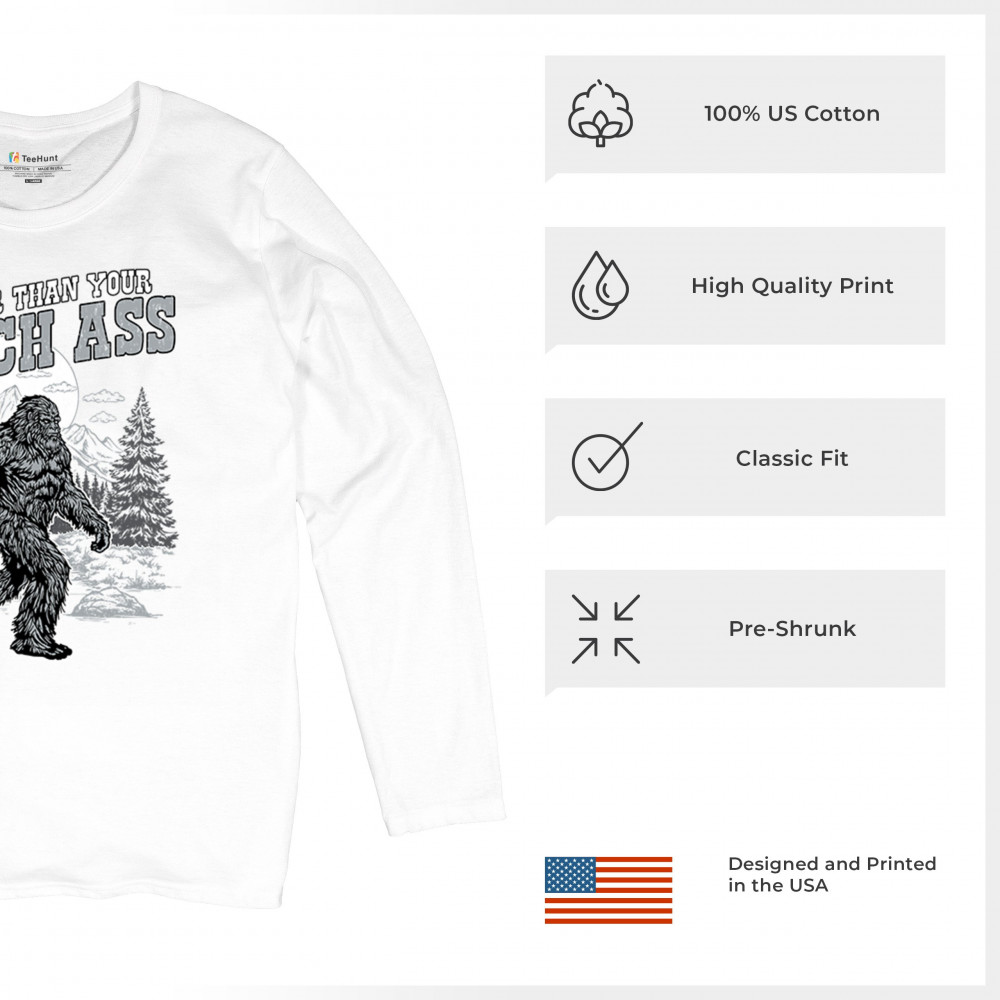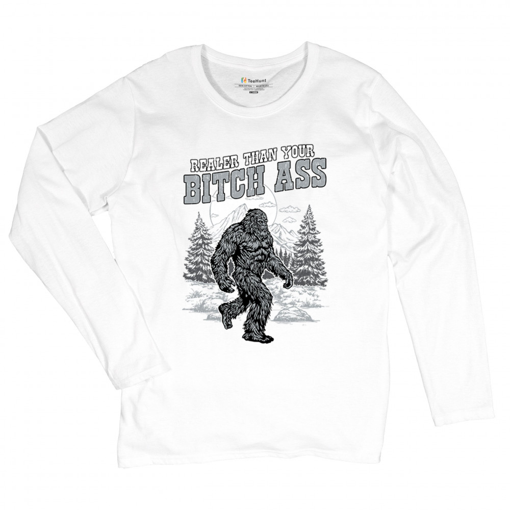 Edgy Bigfoot design with sarcastic cryptid humor and gritty wilderness style. Great for trolls, jokers, and rugged outdoors fans.