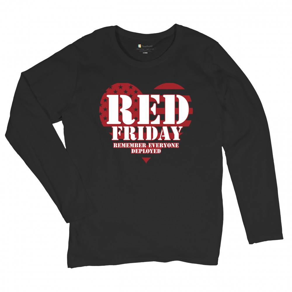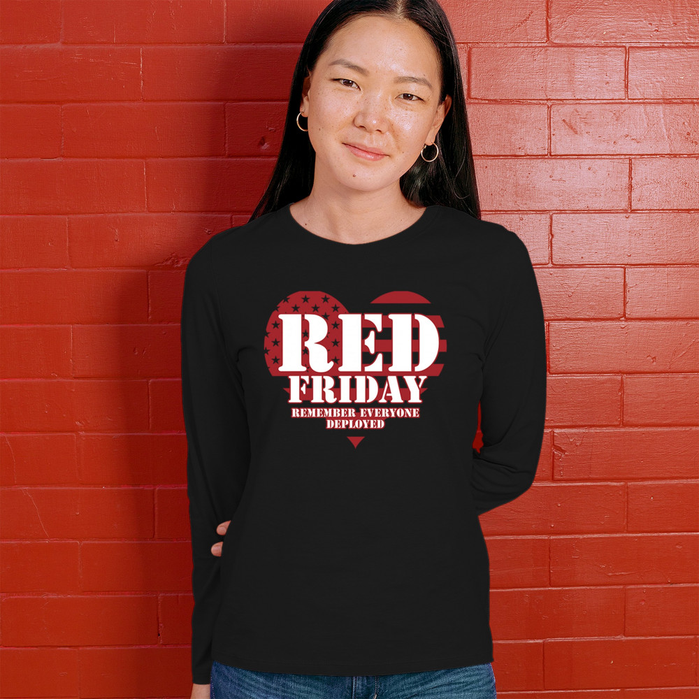 Show your support with our R.E.D. Friday shirt. Featuring a heart design with "Remember Everyone Deployed." Perfect for Veterans Day and patriotic events.