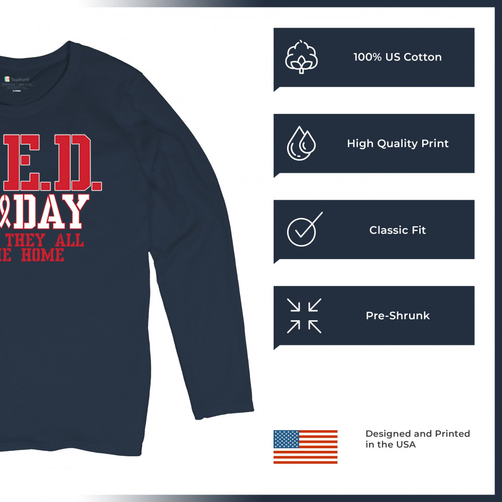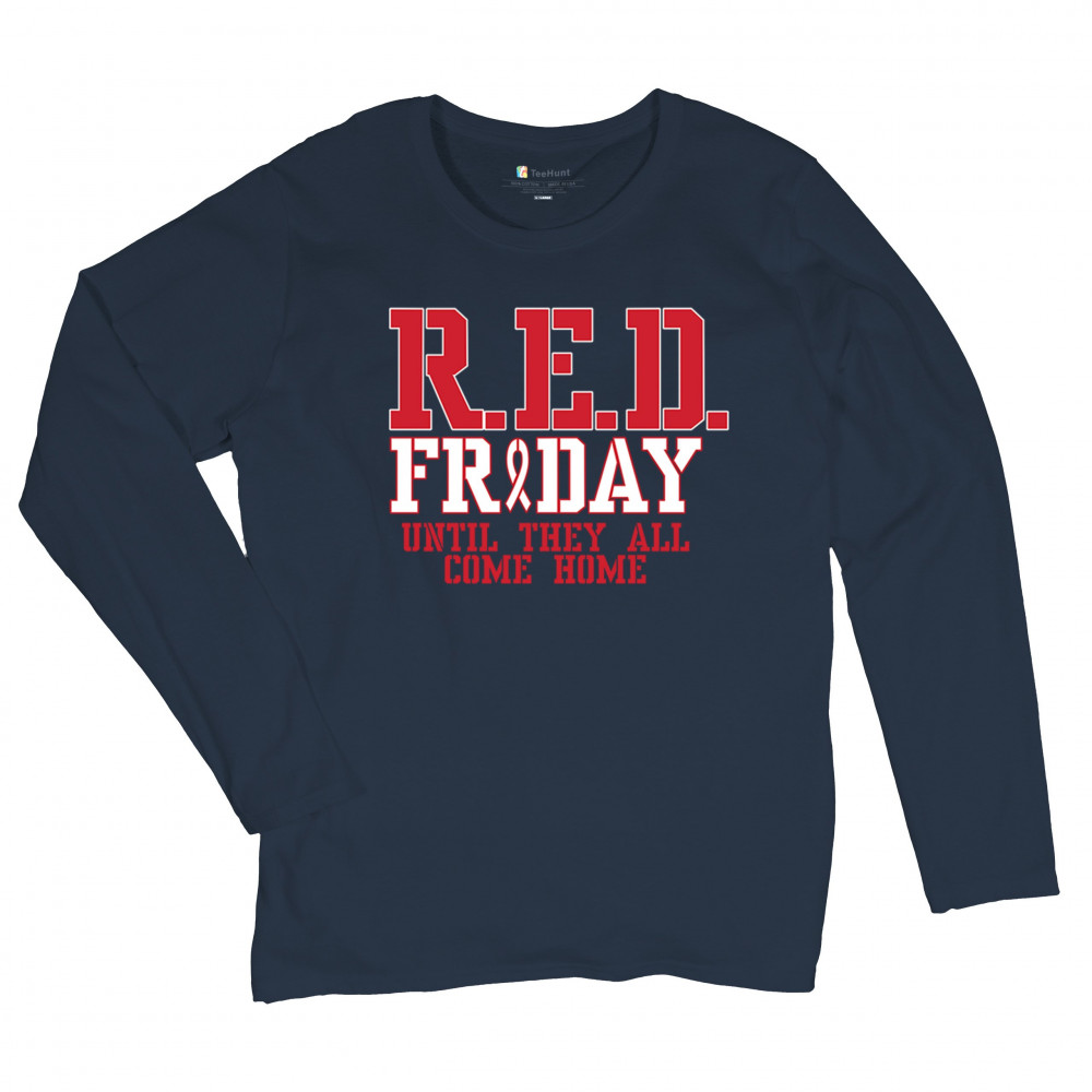 Demonstrate your support for our brave troops with this R.E.D. Friday shirt. Featuring a striking design and the heartfelt message "Until They All Come Home," this shirt is ideal for showing your patriotism and respect for those deployed. Made from premium, soft fabric, it offers lasting comfort and durability. Wear it on Veterans Day, Memorial Day, and the Fourth of July, or anytime you want to honor our military. This shirt is also a wonderful gift for anyone who stands with our troops and believes in remembering everyone deployed.