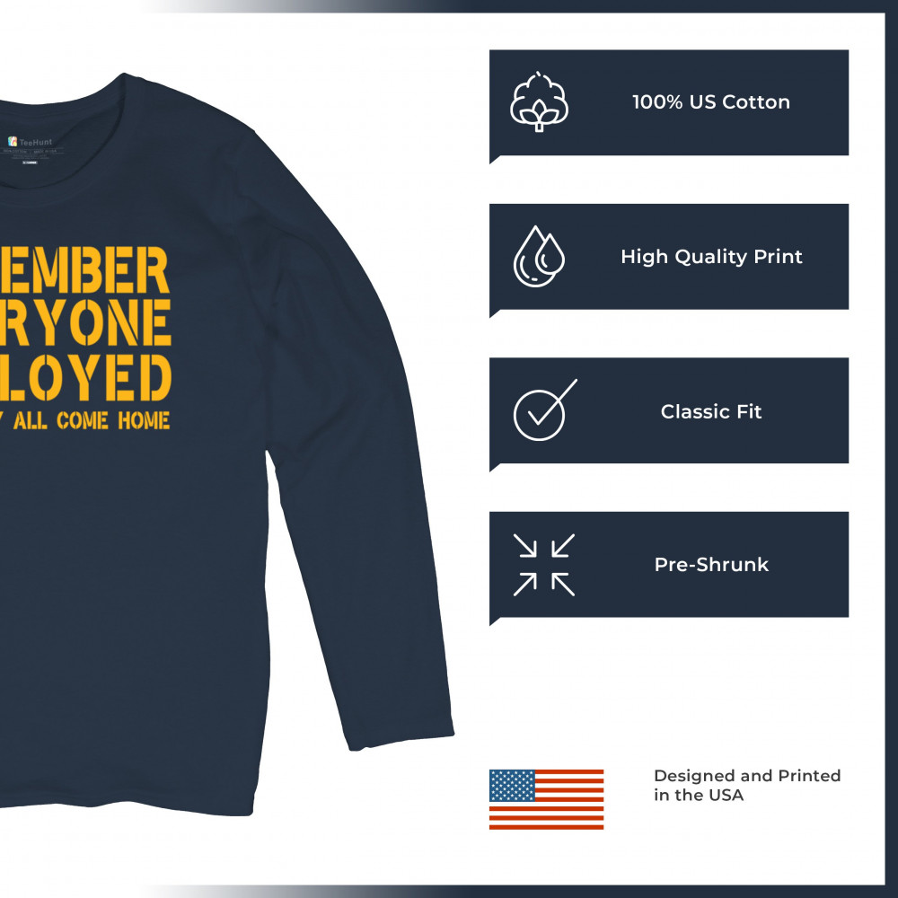 Show your support for deployed troops with our "Remember Everyone Deployed" shirt. Perfect for patriotic events like Veterans Day and Memorial Day.