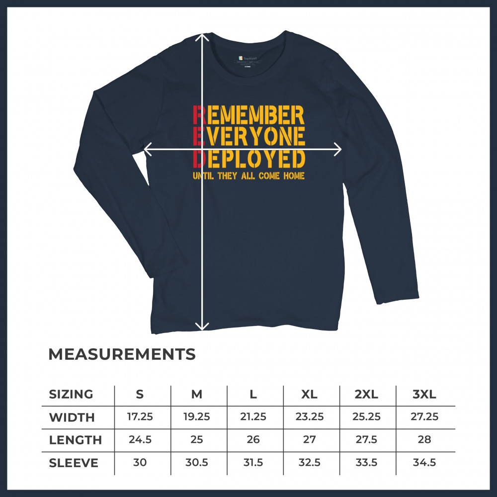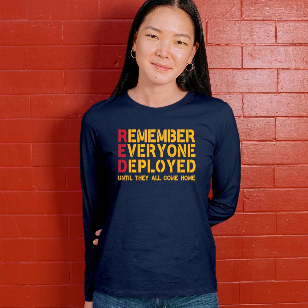 Show your support for our deployed troops with this "Remember Everyone Deployed" shirt. The bold and striking design is perfect for expressing your patriotic pride and honoring those who serve. Made from soft and durable materials, this shirt is ideal for everyday wear or special occasions like Veterans Day, Memorial Day, and the Fourth of July. Whether you're participating in a community event, attending a parade, or just want to show your appreciation, this shirt is a great choice. It also makes a thoughtful gift for anyone who supports our military heroes.