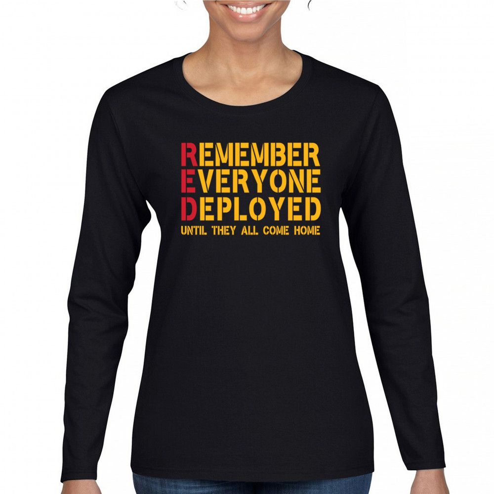 Show your support for our deployed troops with this "Remember Everyone Deployed" shirt. The bold and striking design is perfect for expressing your patriotic pride and honoring those who serve. Made from soft and durable materials, this shirt is ideal for everyday wear or special occasions like Veterans Day, Memorial Day, and the Fourth of July. Whether you're participating in a community event, attending a parade, or just want to show your appreciation, this shirt is a great choice. It also makes a thoughtful gift for anyone who supports our military heroes.