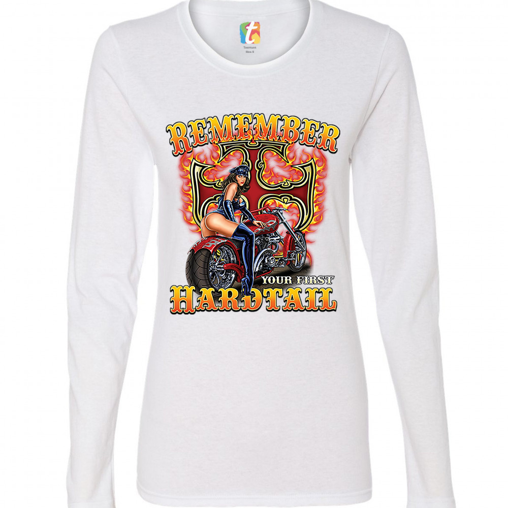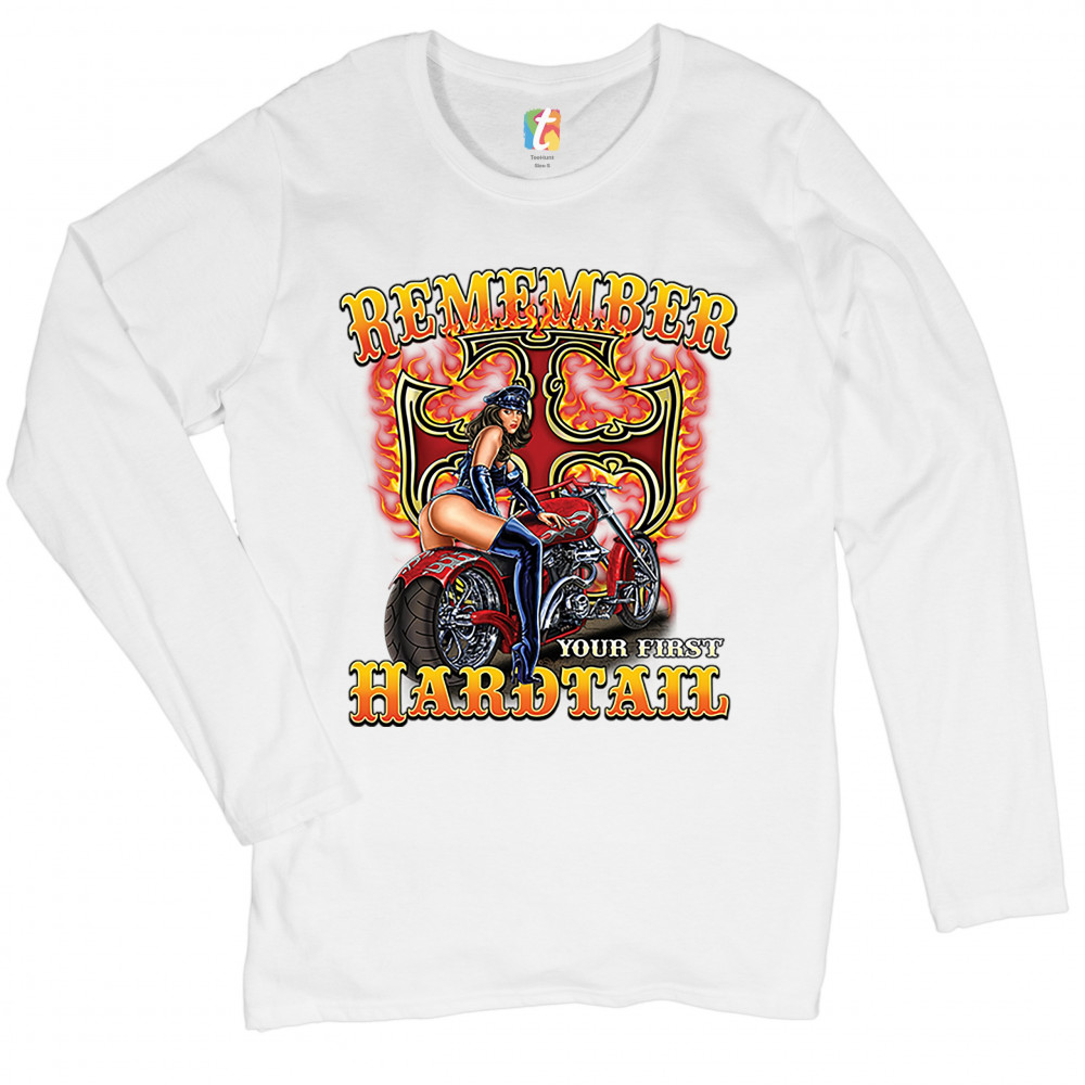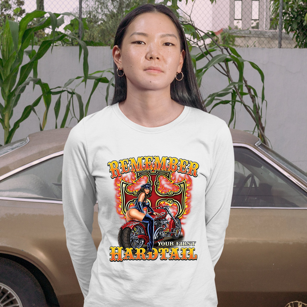 REMEMBER YOUR FIRST HARDTAIL women's long sleeve t-shirt biker babe motorcycle white
