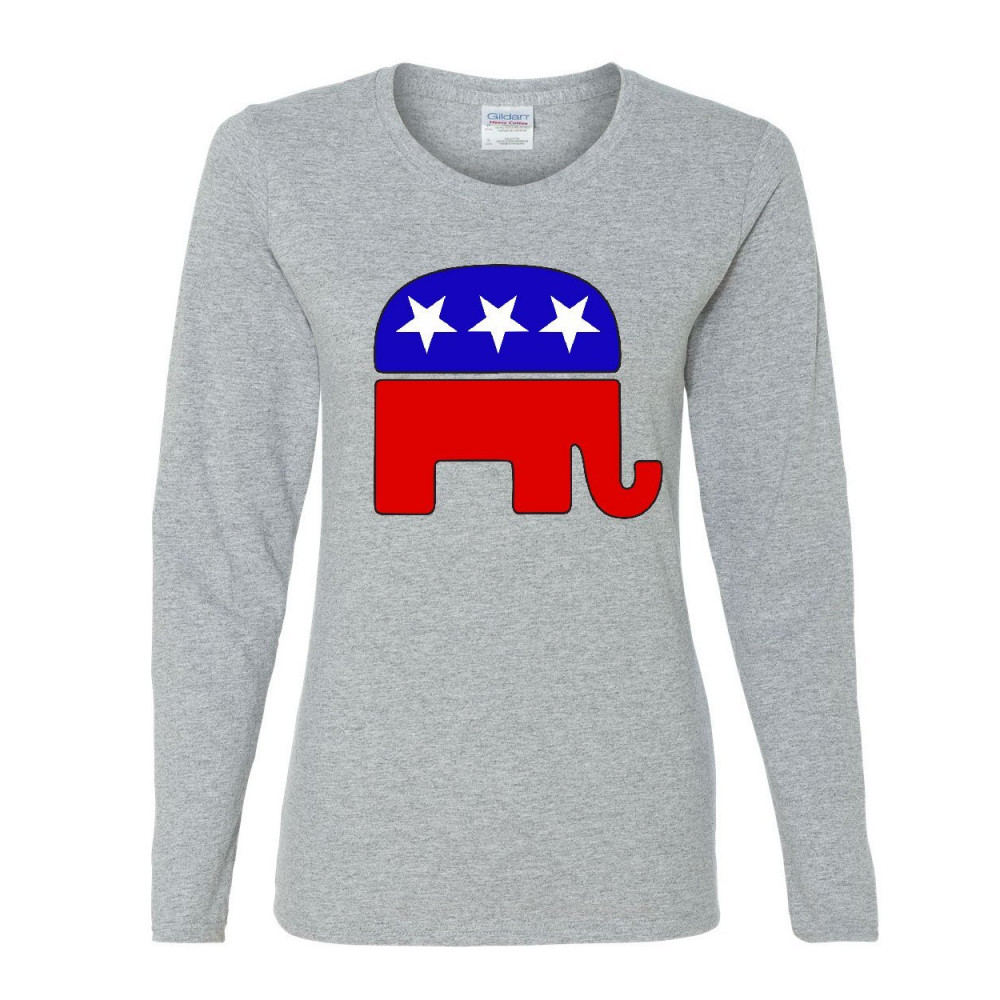 REPUBLICAN PARTY ELEPHANT logo women's long sleeve tee political conservative gray