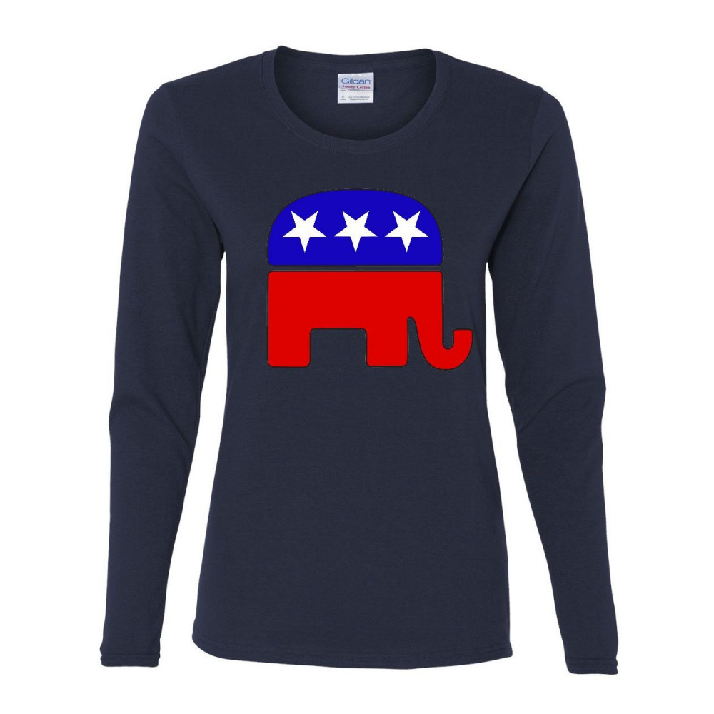REPUBLICAN PARTY ELEPHANT logo women's long sleeve tee political conservative navy blue