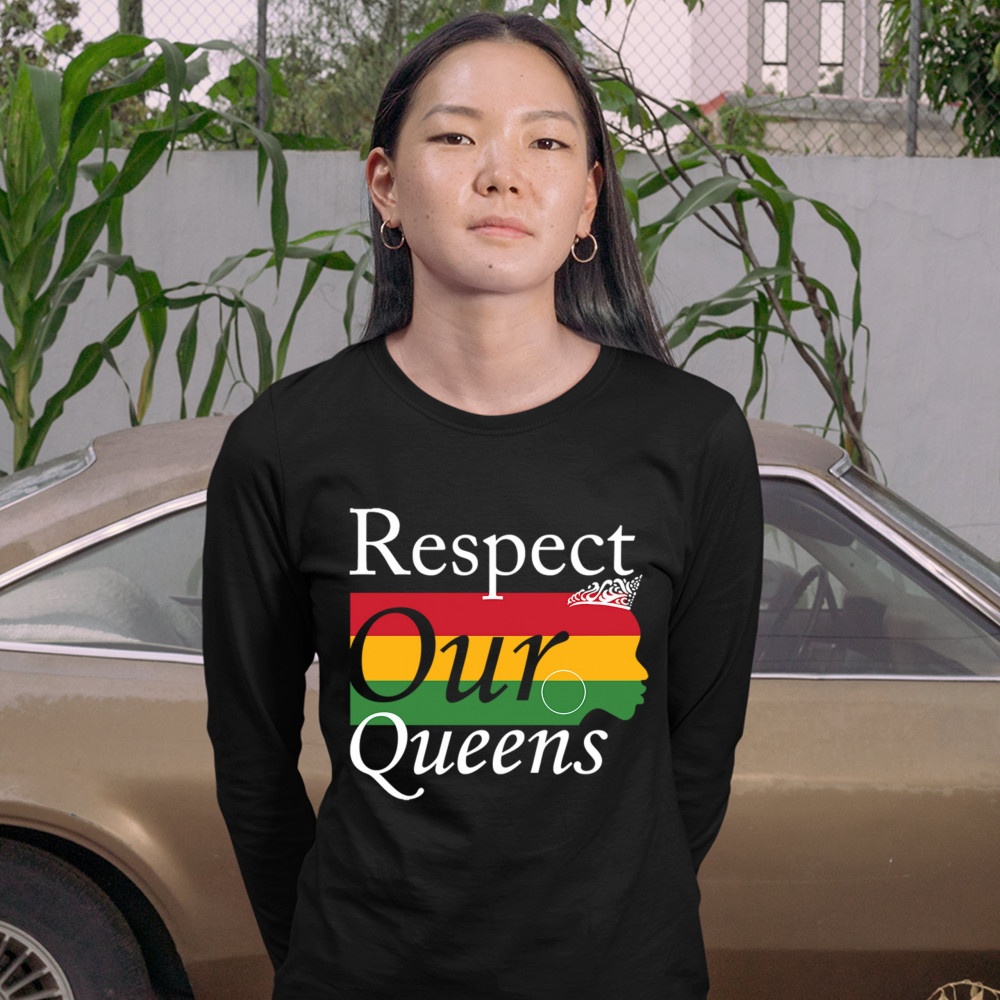 RESPECT OUR QUEENS women's long sleeve t-shirt black girl magic afro women black
