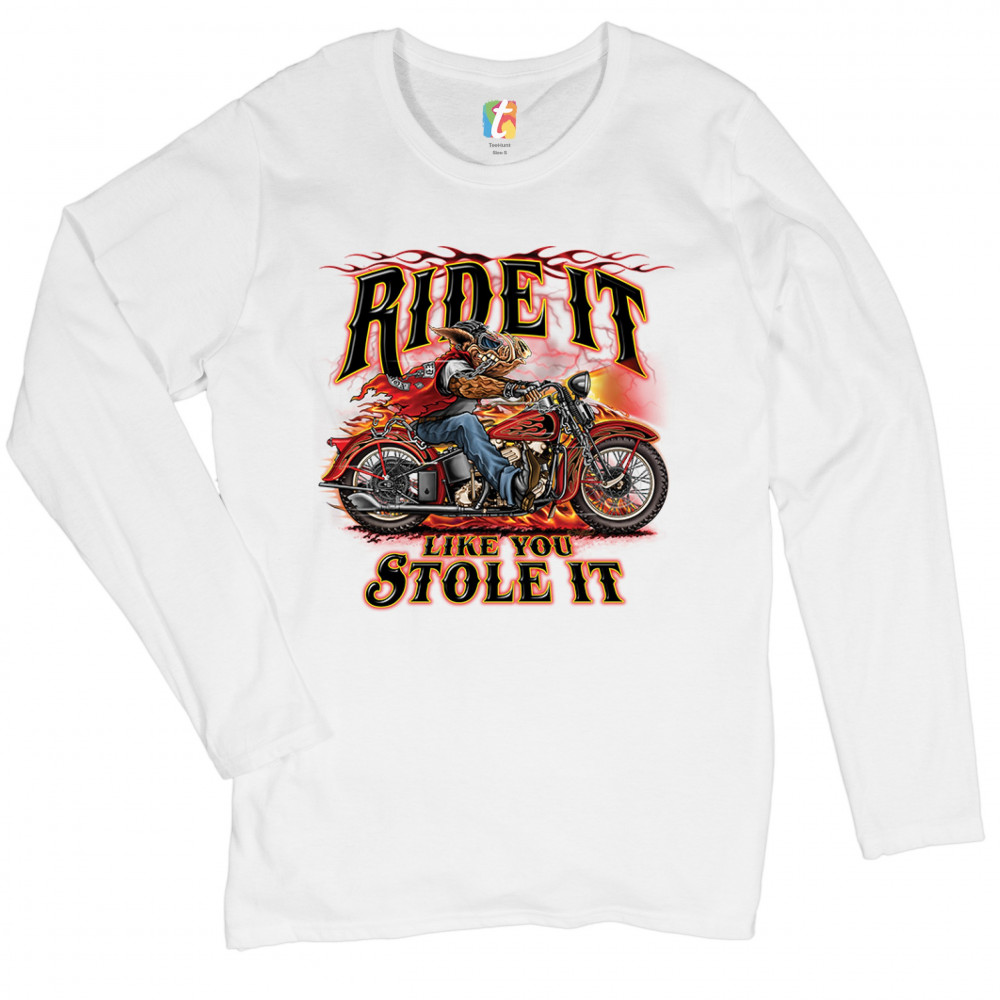 RIDE IT LIKE YOU STOLE IT women's long sleeve t-shirt biker born to be wild white