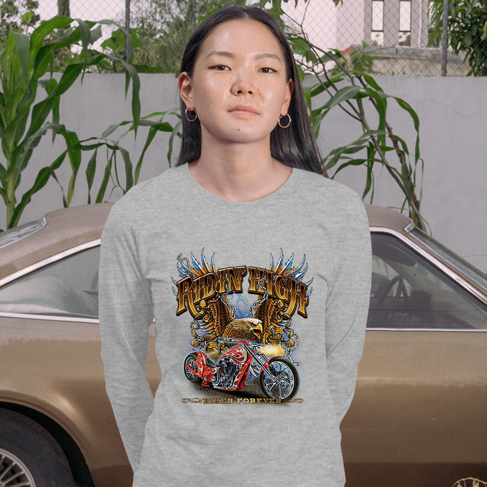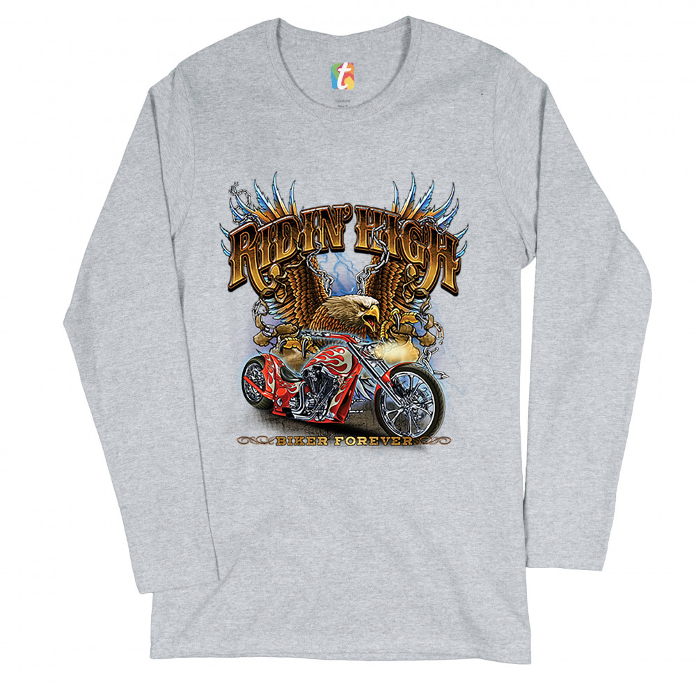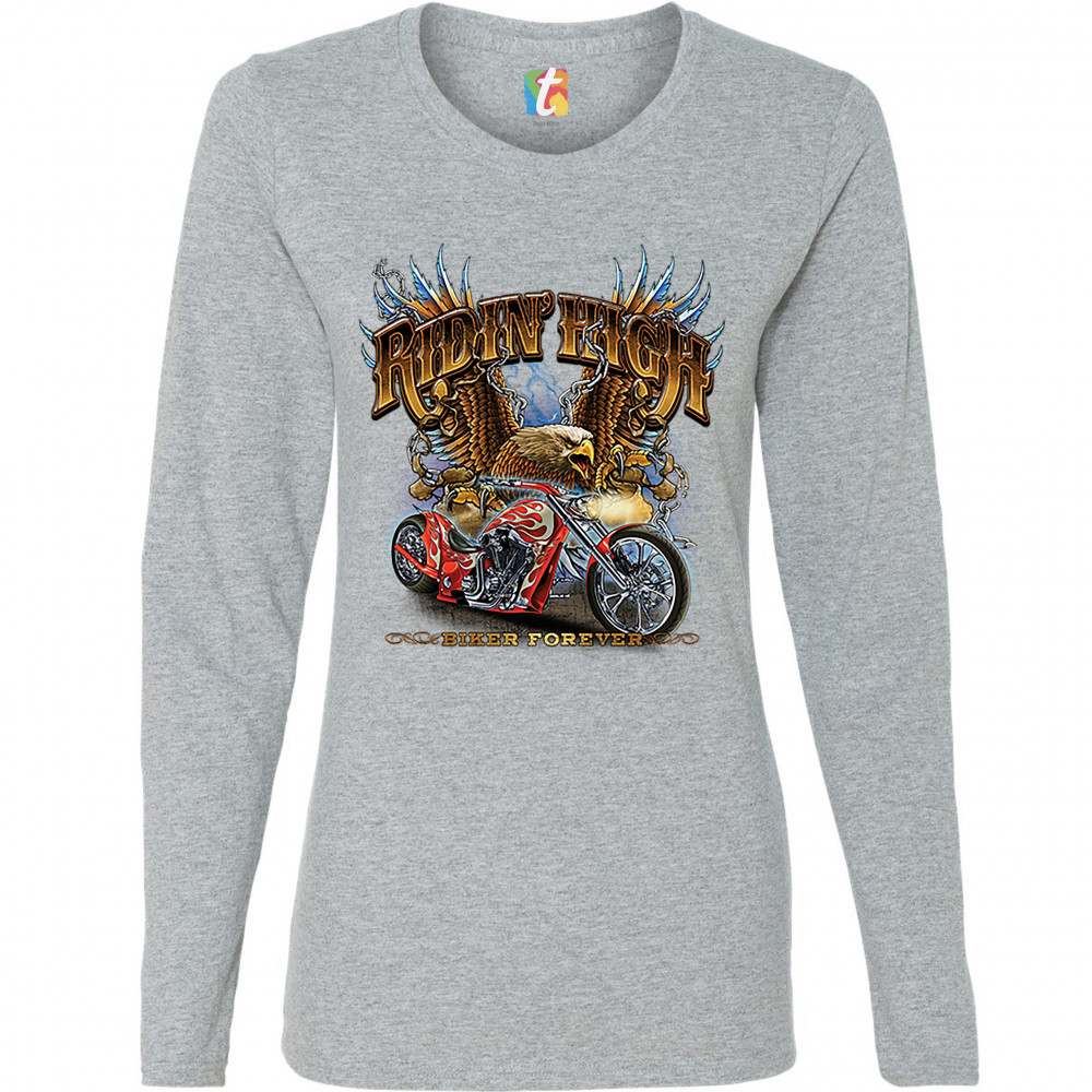 RIDIN' HIGH women's long sleeve t-shirt biker forever chopper american eagle gray