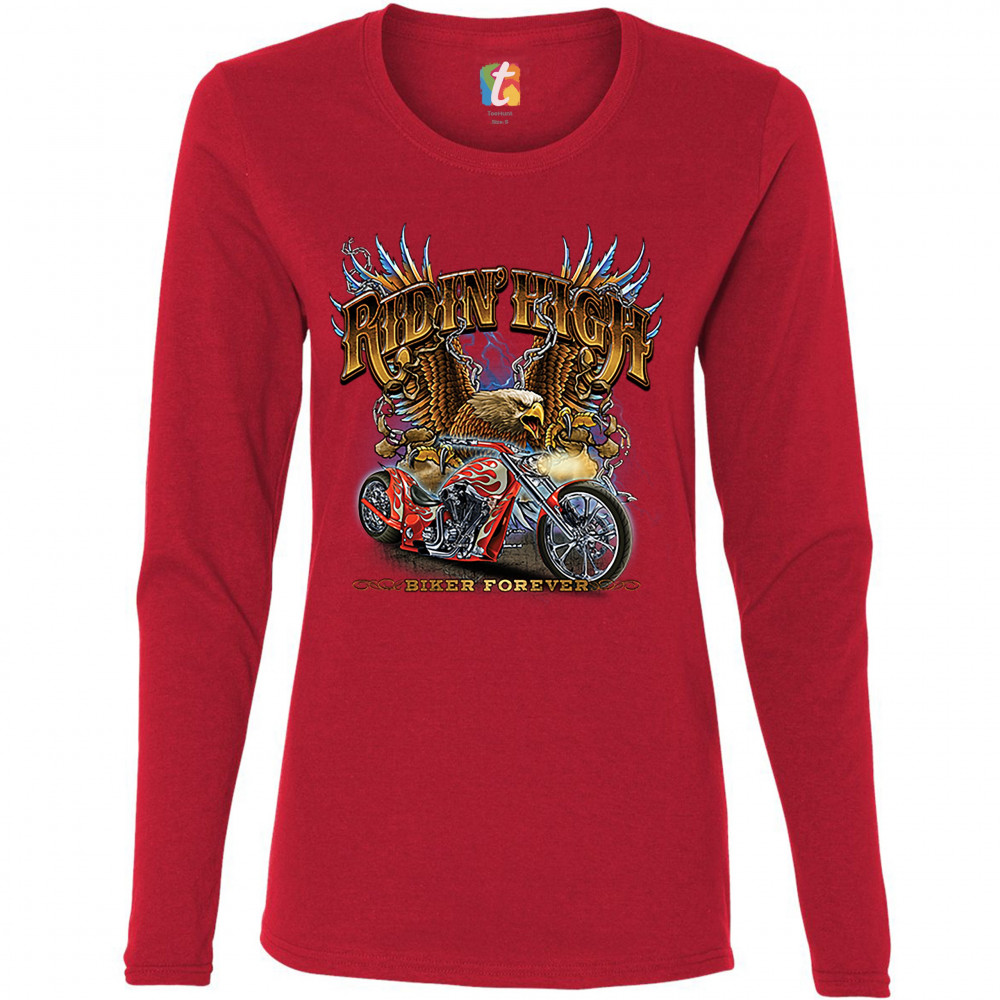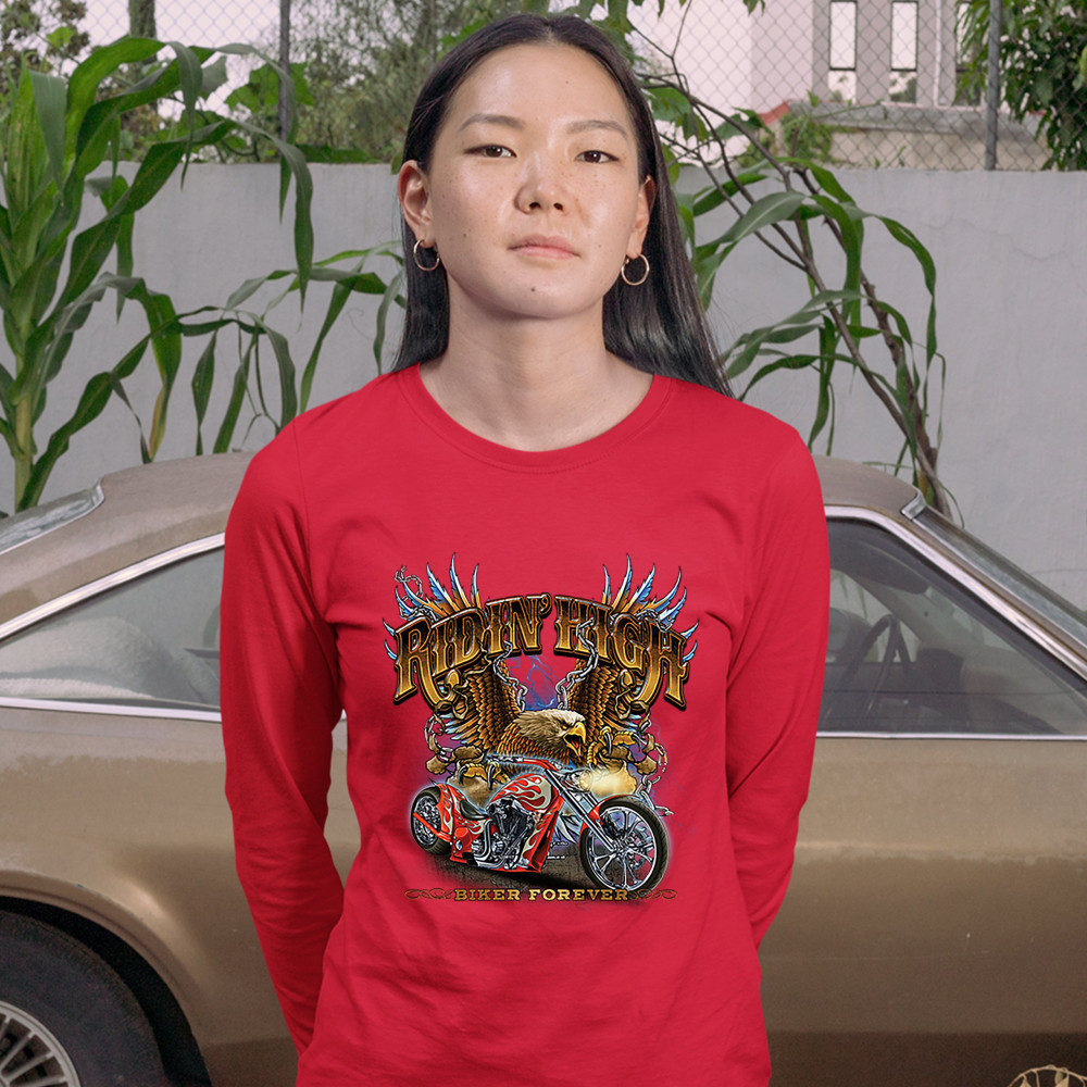 RIDIN' HIGH women's long sleeve t-shirt biker forever chopper american eagle red