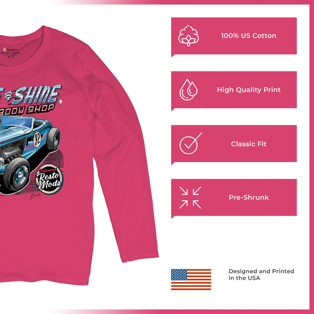 Our "Rise & Shine Auto Body Shop" design is a tribute to classic car culture and professional resto mods. This striking graphic showcases a vintage hot rod, perfect for car enthusiasts and auto restoration fans. Whether you're hitting the car show circuit or working in your garage, this design adds a touch of retro charm to your look. Crafted from premium materials, it offers both comfort and durability, ensuring it stands up to your active lifestyle. Celebrate the art of automotive restoration with this standout design.