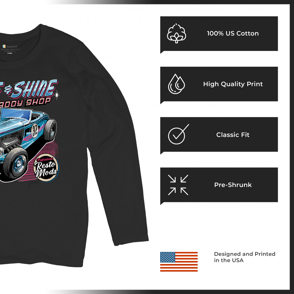 Our "Rise & Shine Auto Body Shop" design is a tribute to classic car culture and professional resto mods. This striking graphic showcases a vintage hot rod, perfect for car enthusiasts and auto restoration fans. Whether you're hitting the car show circuit or working in your garage, this design adds a touch of retro charm to your look. Crafted from premium materials, it offers both comfort and durability, ensuring it stands up to your active lifestyle. Celebrate the art of automotive restoration with this standout design.