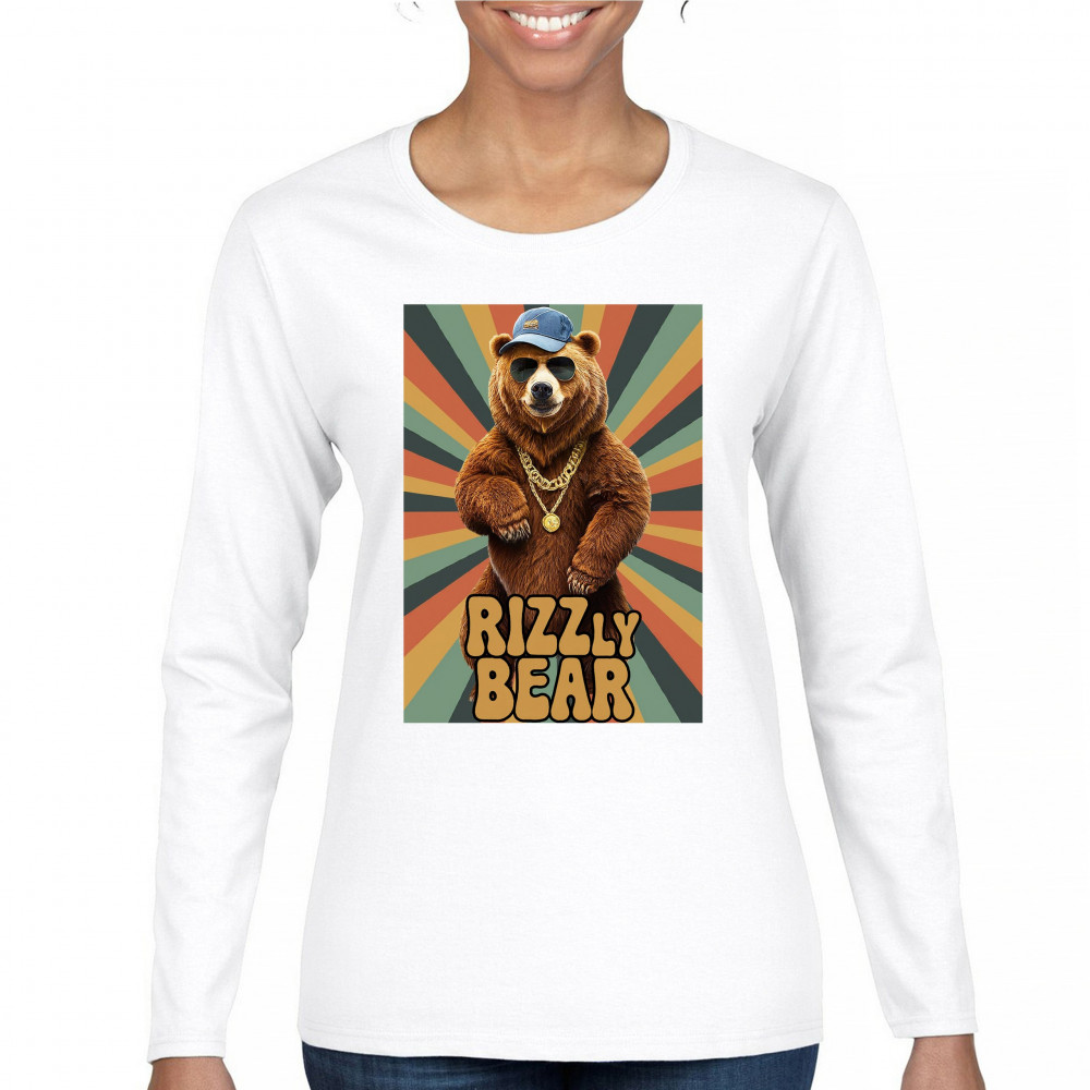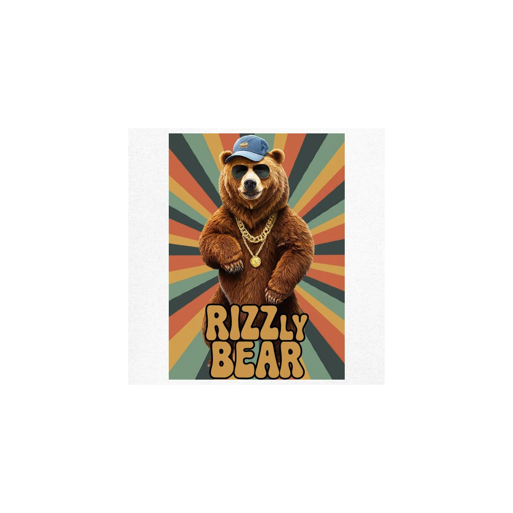 What happens when a bear strolls through the city and grabs a cap and some gold? You get the Rizzly Bear. It's fun, fearless, and a bit funky – a true original in the world of graphic design, just like you.