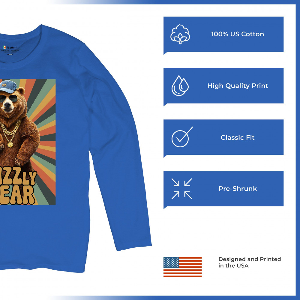 What happens when a bear strolls through the city and grabs a cap and some gold? You get the Rizzly Bear. It's fun, fearless, and a bit funky – a true original in the world of graphic design, just like you.
