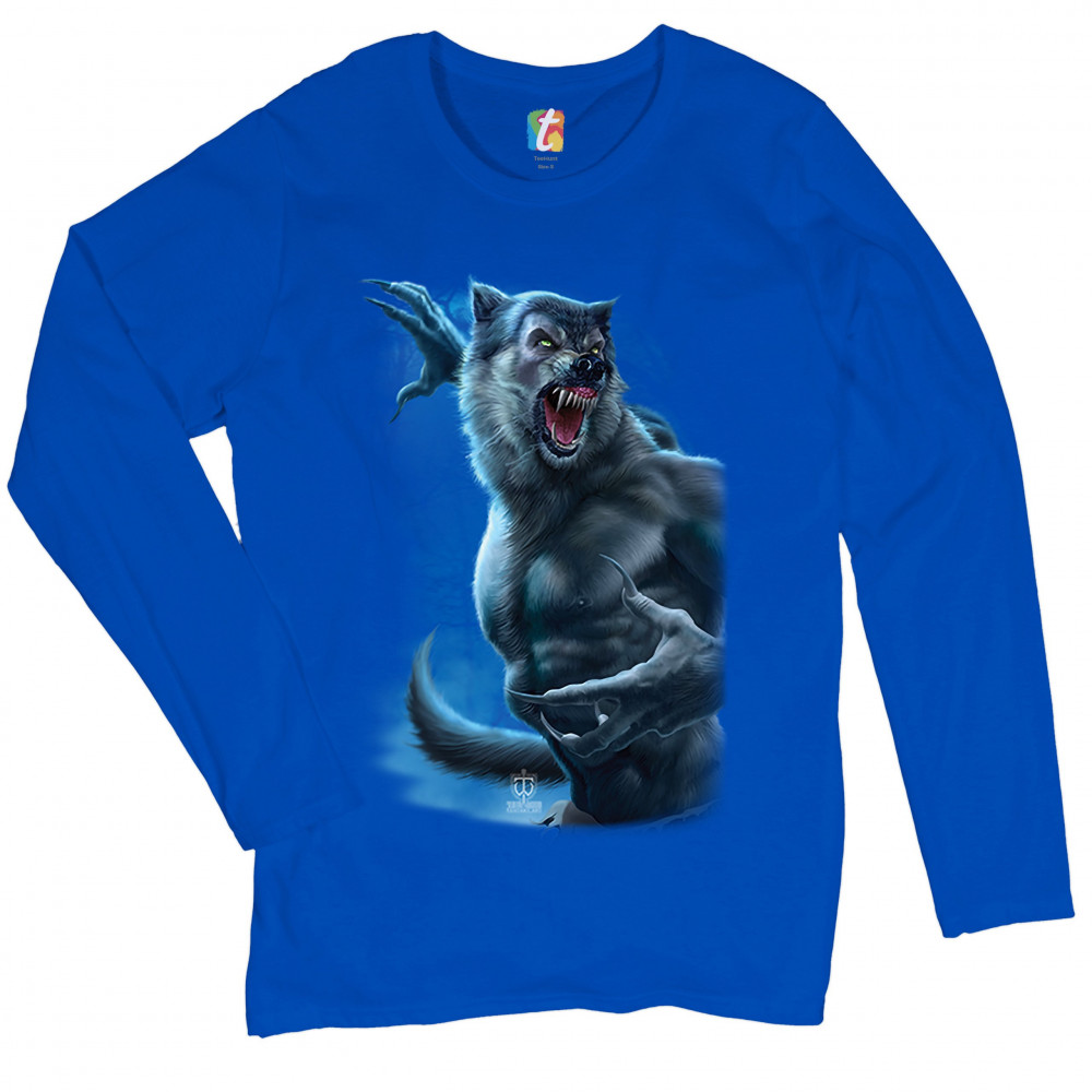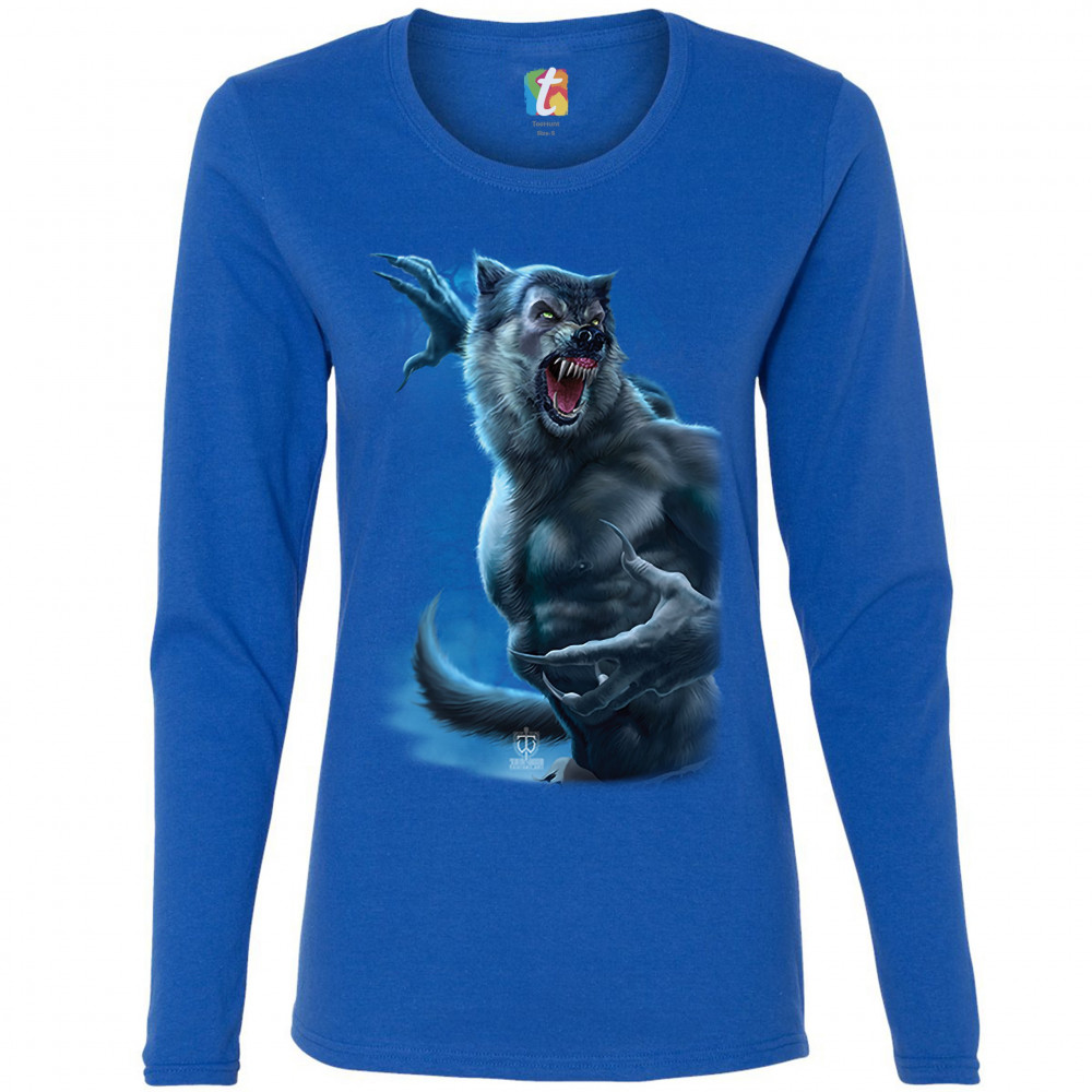 ROARING WEREWOLF women's long sleeve t-shirt halloween scary gothic monster royal blue